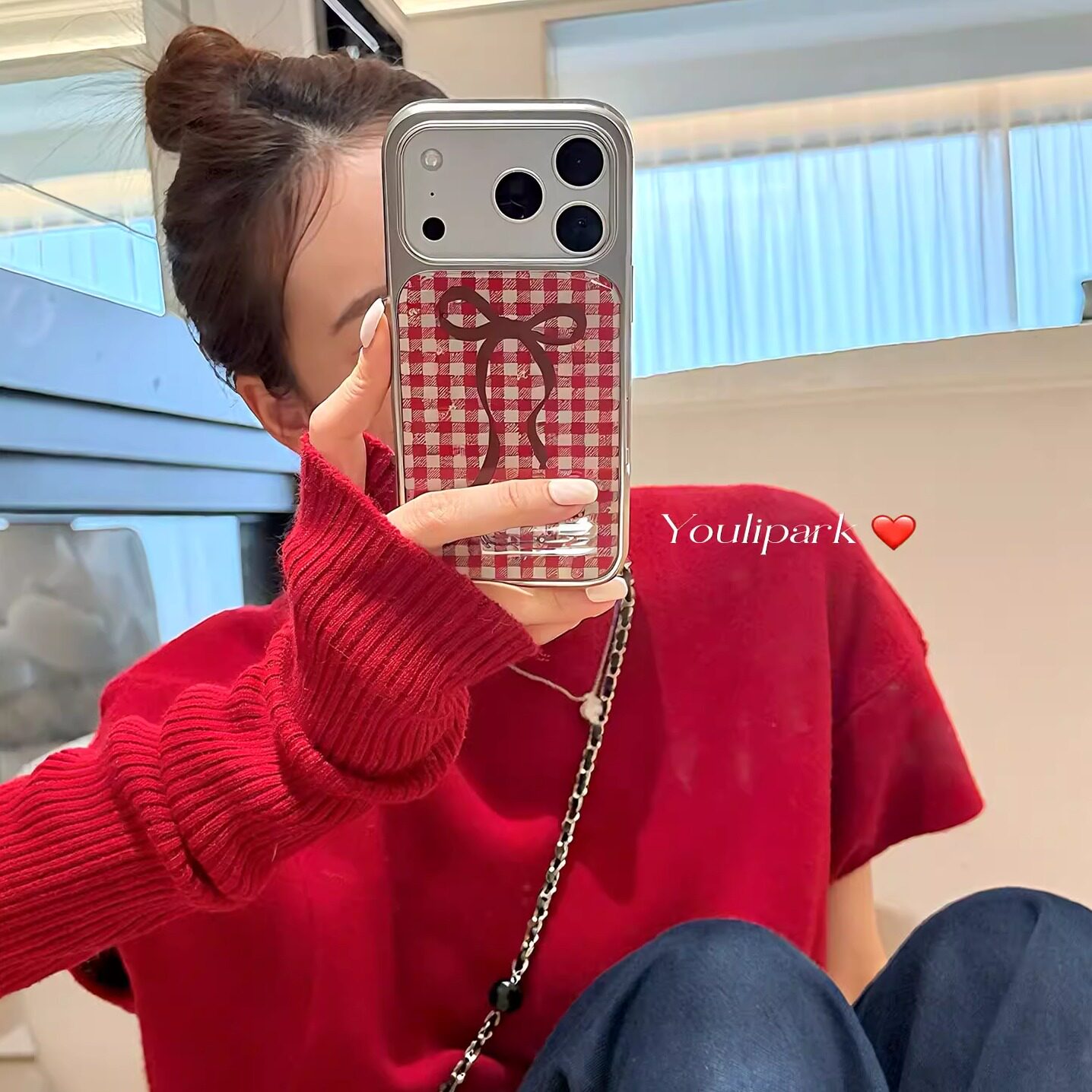 由里公园ins韩系简约少女格纹星星蝴蝶结17适用17pro苹果17ProMax手机壳iPhone16全包14新款16Promax保护套13
