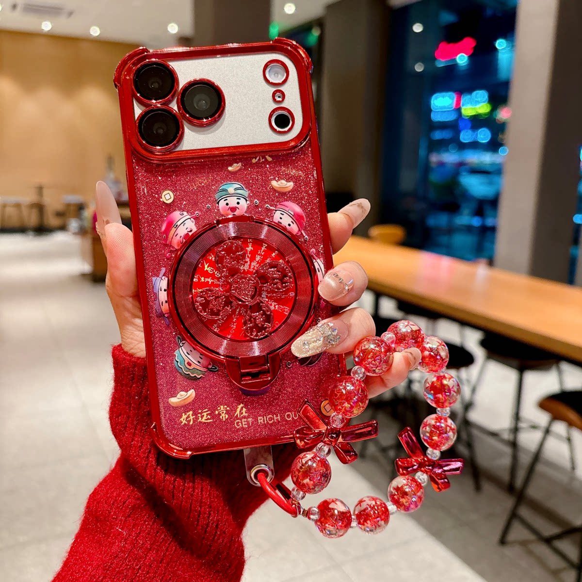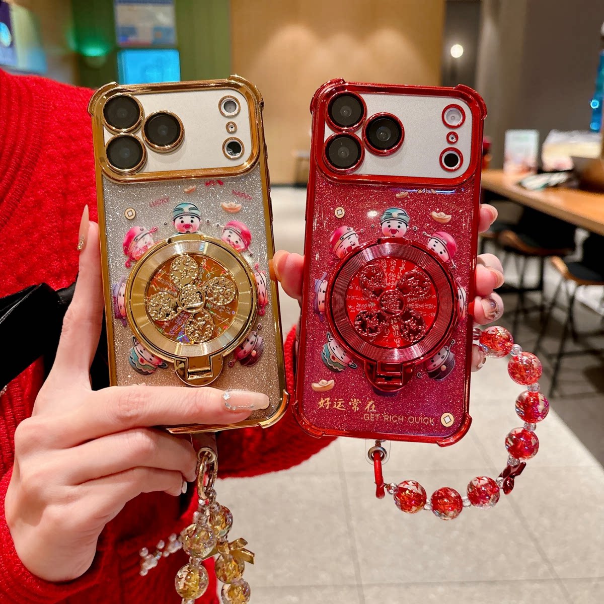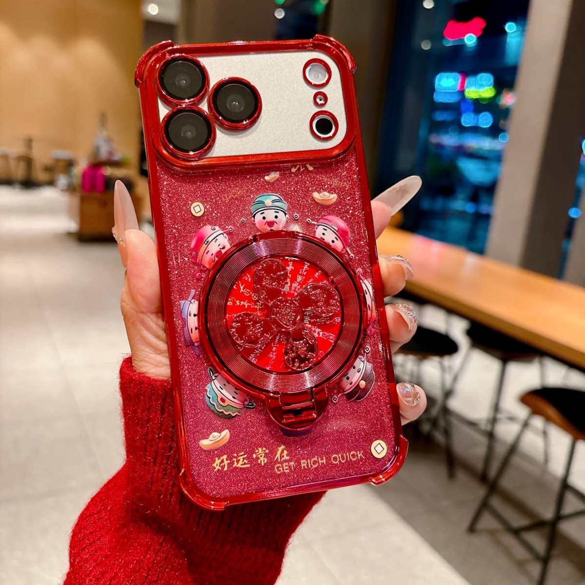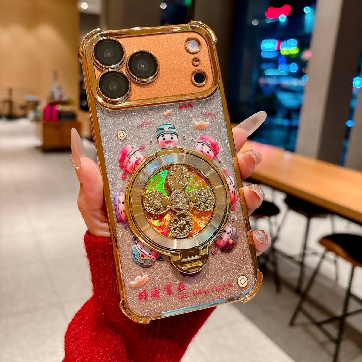国风财神风生水起支架适用苹果17Pro手机壳IP15/16四角电镀14防摔