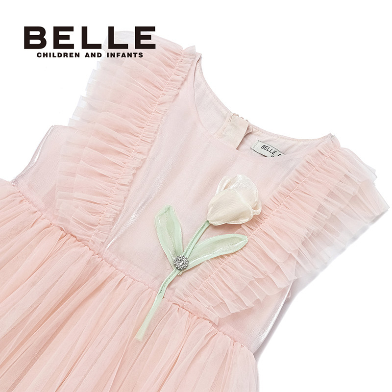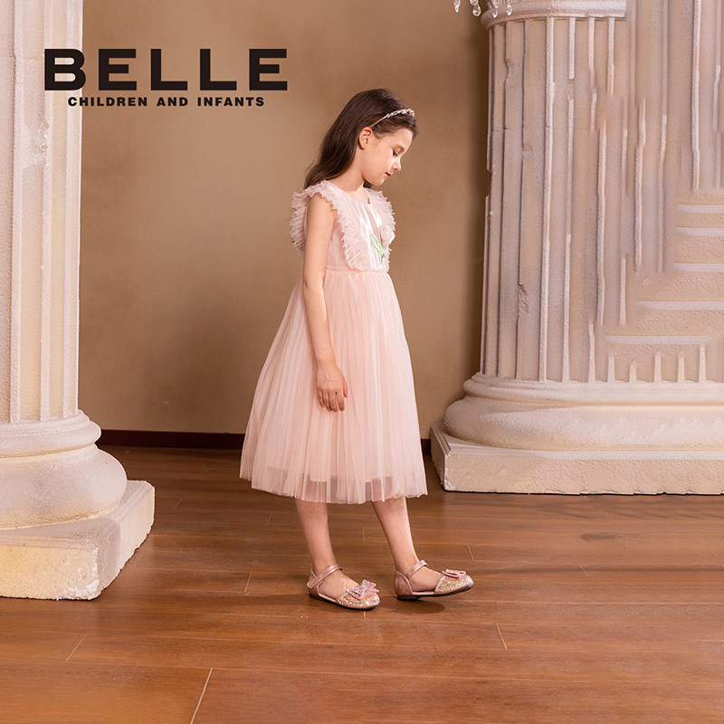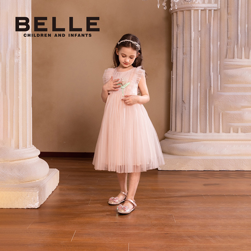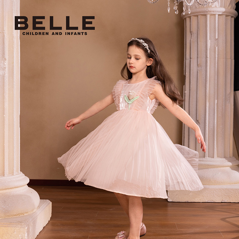 百丽童装女童连衣裙2026夏季新款儿童公主裙女孩网纱裙无袖背心裙