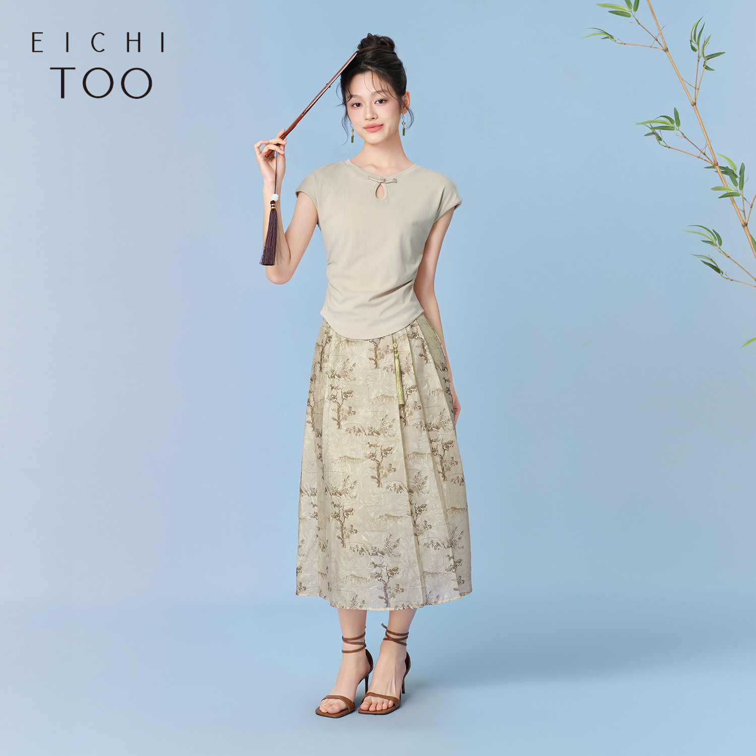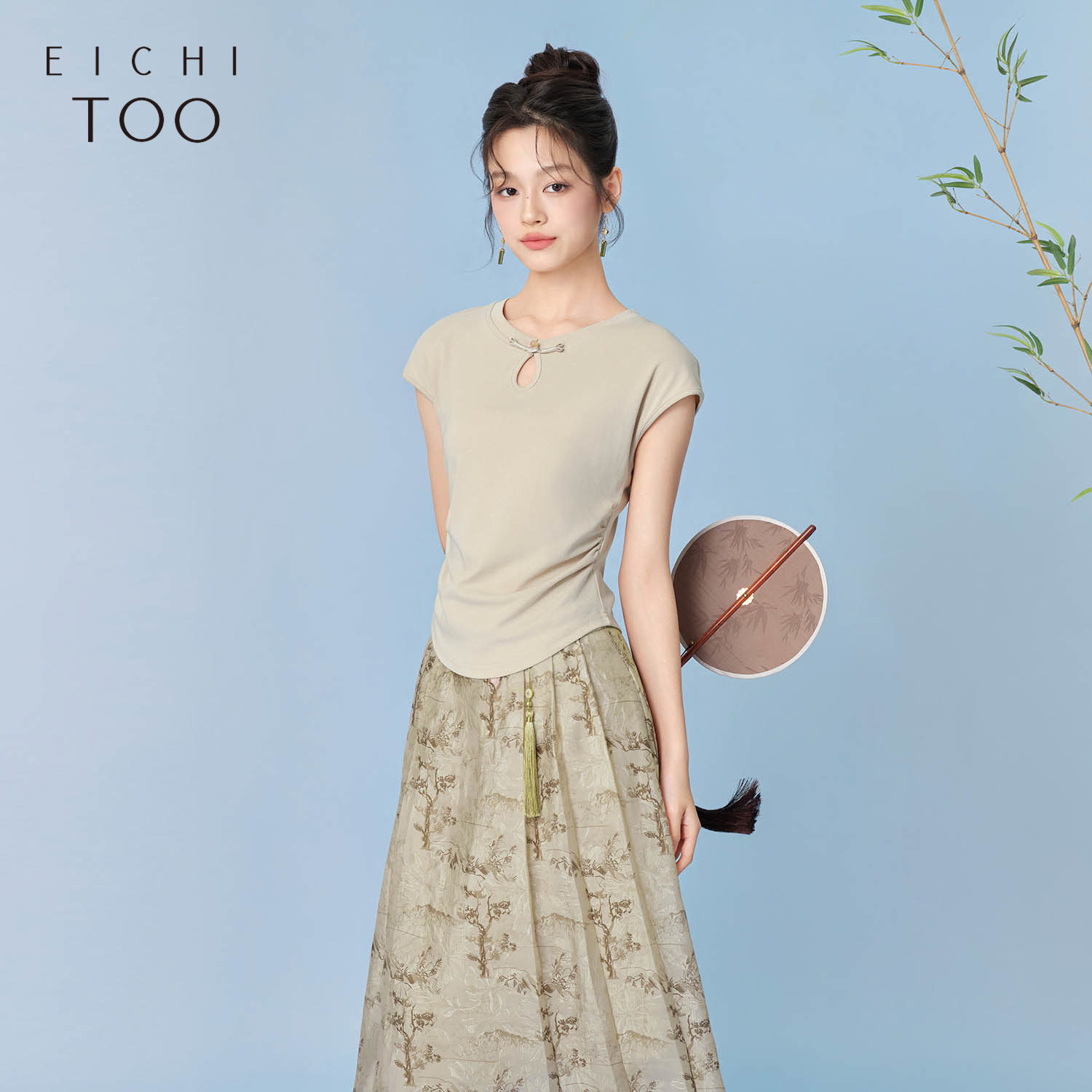爱居兔夏季新款新中式盘扣设计复古时尚短袖T恤