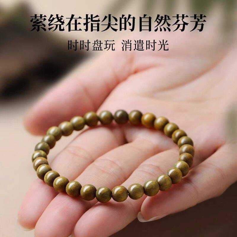 新中式天然绿檀木手串佛珠文玩檀香木绿檀男女款手链木质盘玩解压