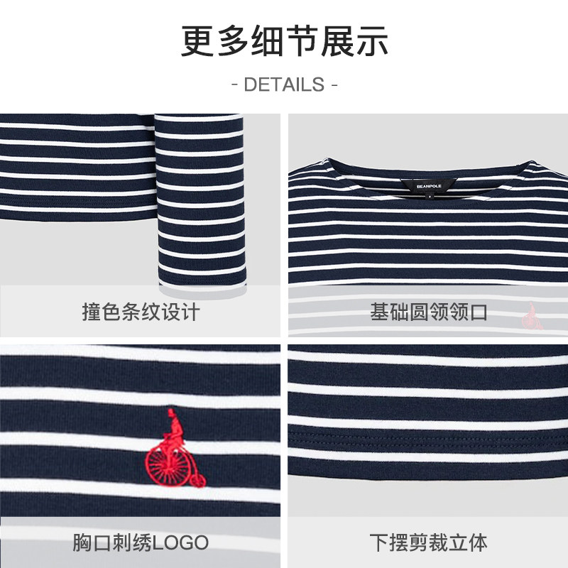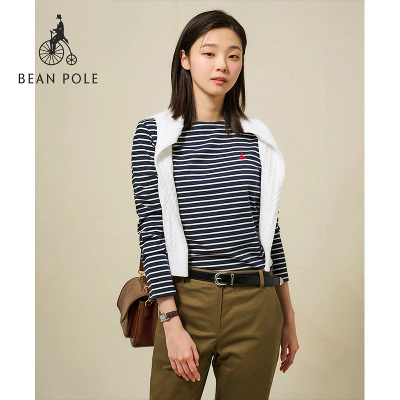 【新品】BEANPOLE滨波 春夏女基础圆领纯棉休闲松弛感条纹长袖T恤
