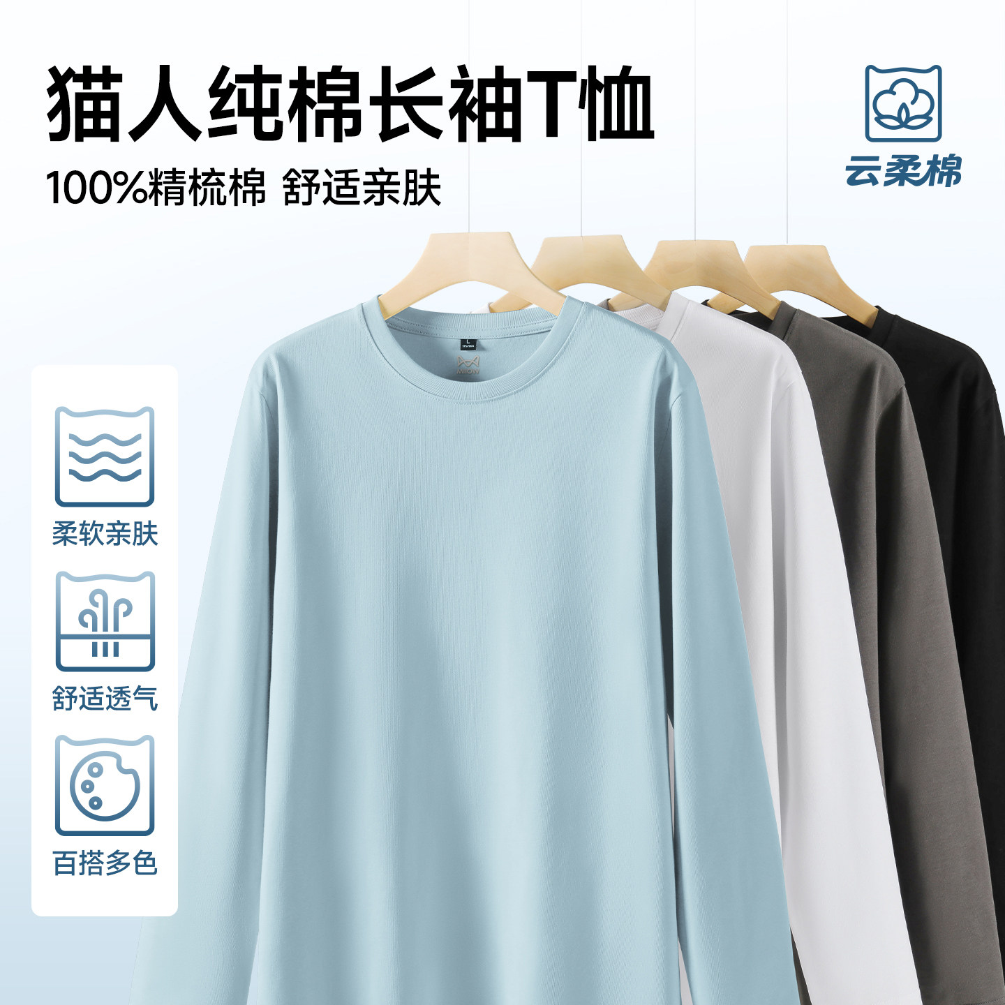 拇指白小T二代纯棉长袖t恤男女款2025秋季舒适纯色百搭打底衫