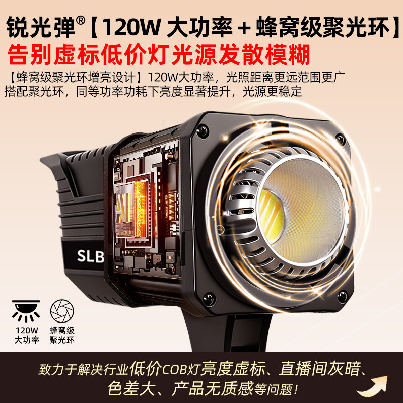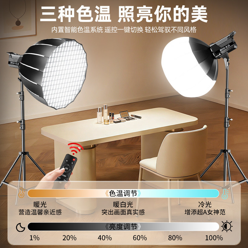 锐富图COB专业直播补光灯主播专用拍摄打光120W直播间球灯美颜灯常亮灯拍视频服装人像拍照深抛摄影灯球形