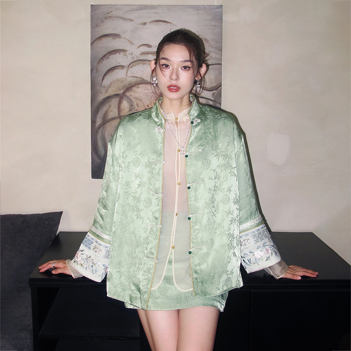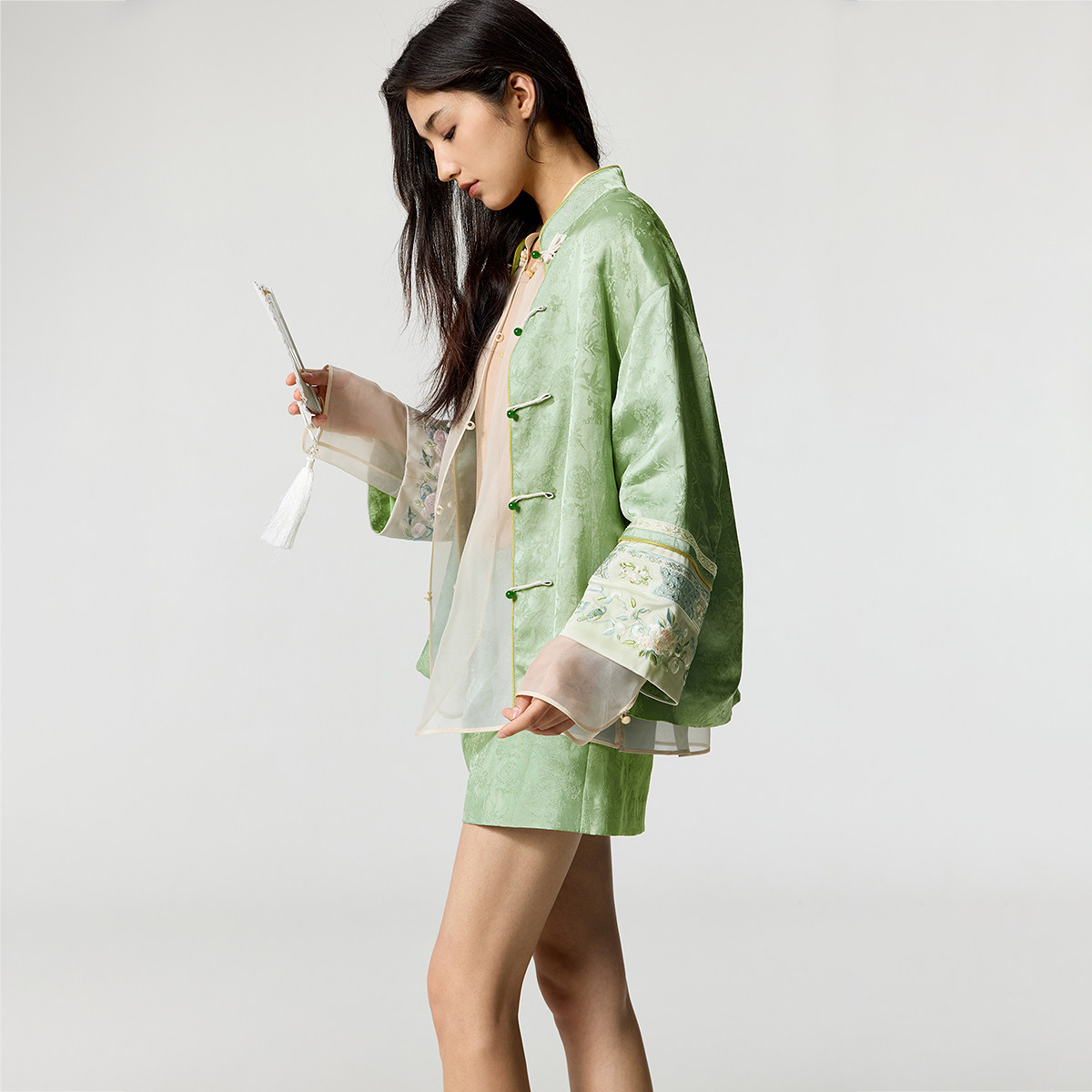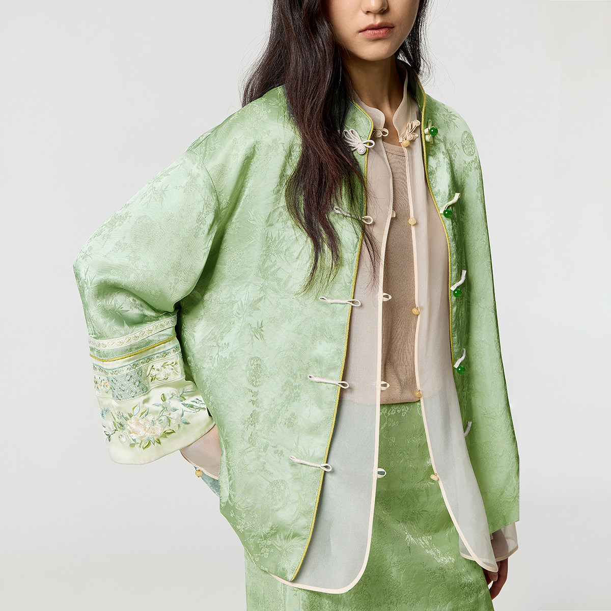 【新品】OCHIRLY欧时力 缎面提花盘扣新中式外套对襟绣花2025秋季