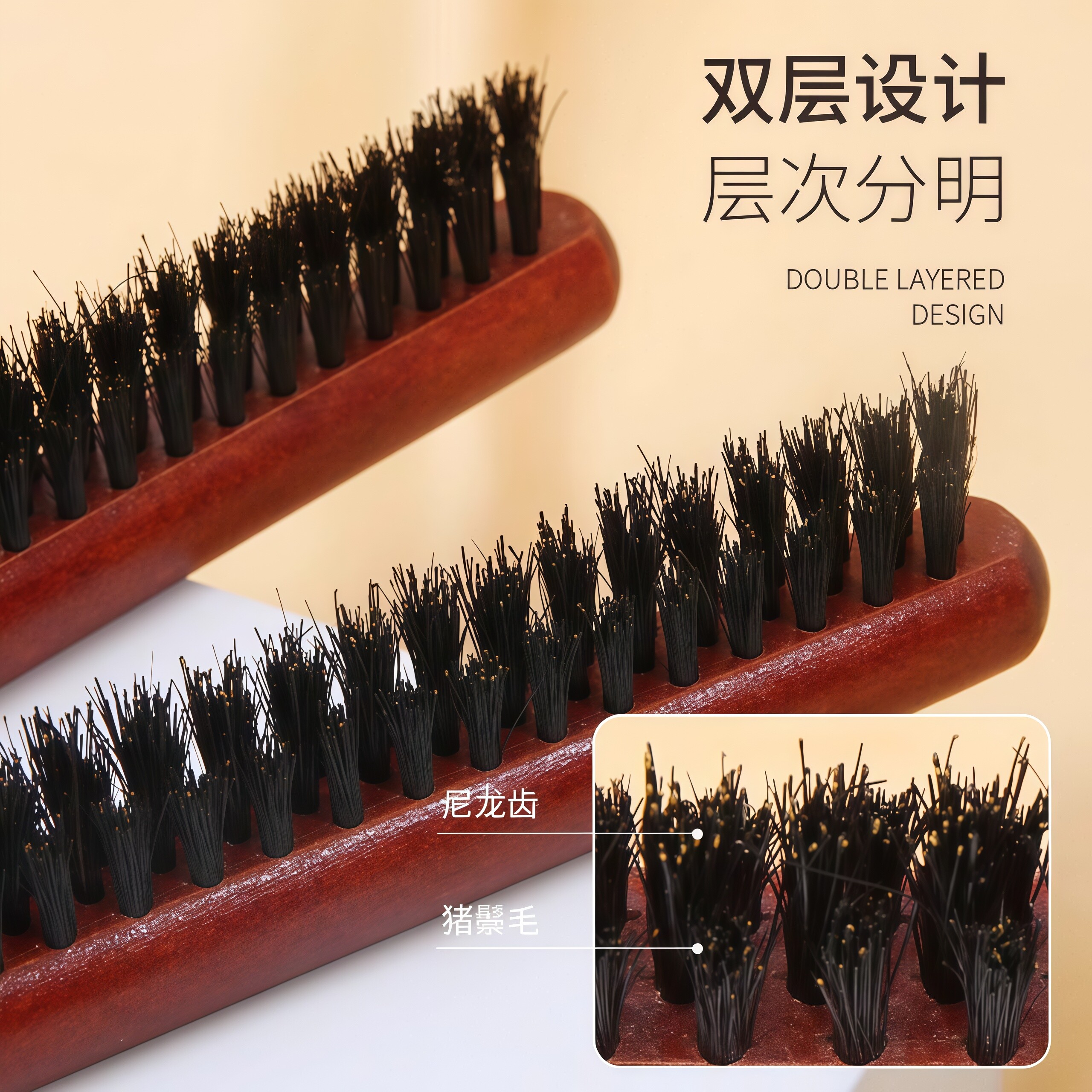 猪鬃毛窄齿梳美发三排打毛梳子蓬松造型长柄化妆尖尾盘发卷发木梳