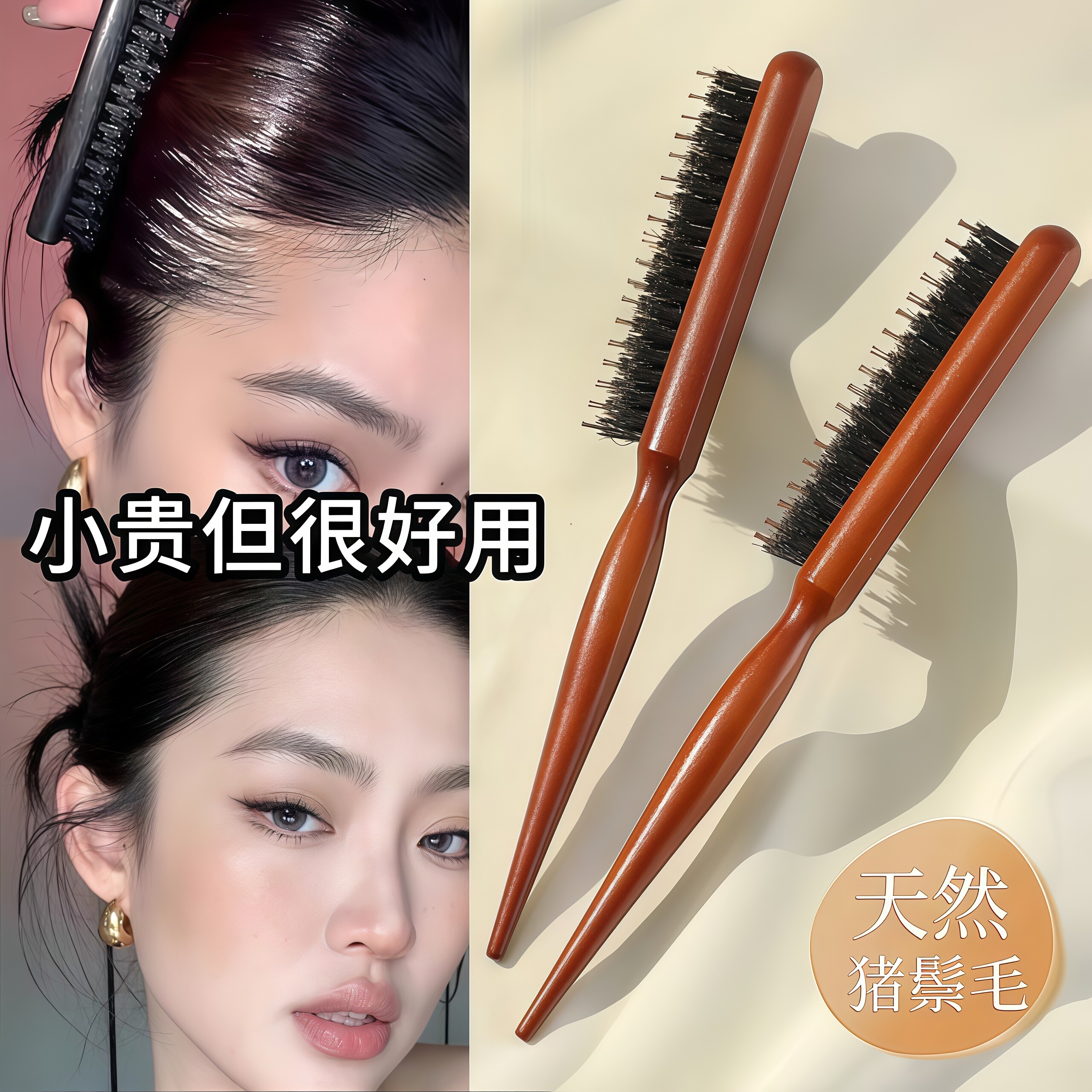 猪鬃毛打毛尖尾梳子蓬松窄齿卷发化妆师专用造型扎头盘发美发马尾