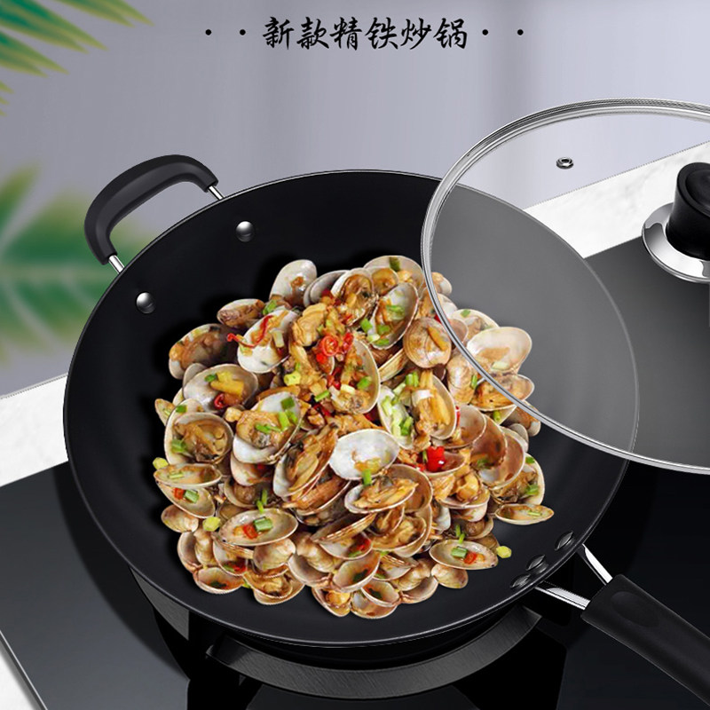 【经典款】中康精铁炒锅铁锅氮化防锈无涂层炒锅电磁炉燃气灶通用