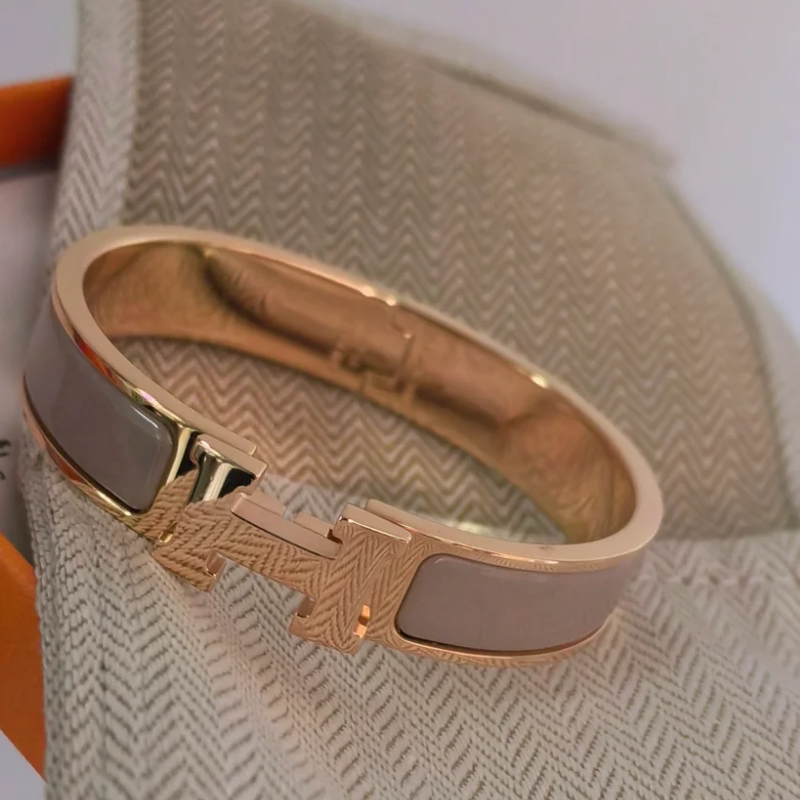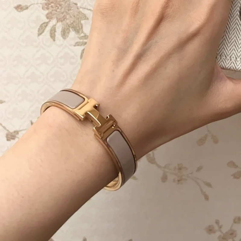 手镯女镀18k金玫瑰金韩版轻奢ins小众旋转扣高级感H手环男女珐琅