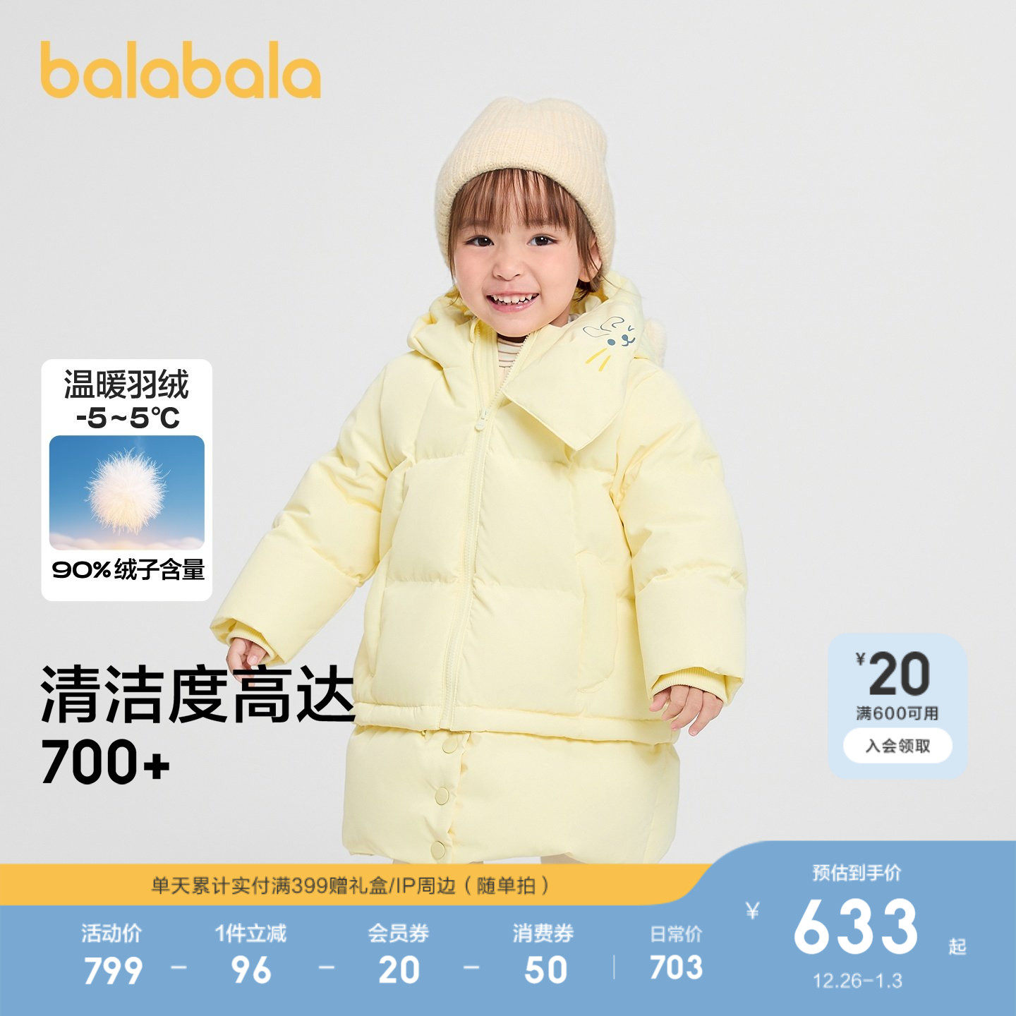 【商场同款】巴拉巴拉女童羽绒服保暖连帽外套2025新款冬装带口罩