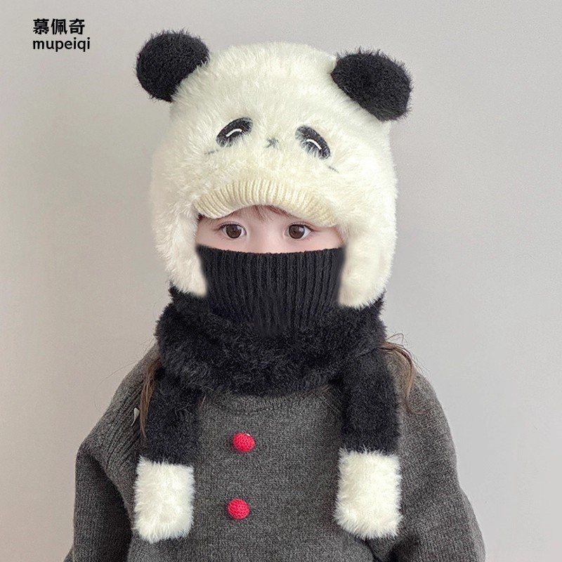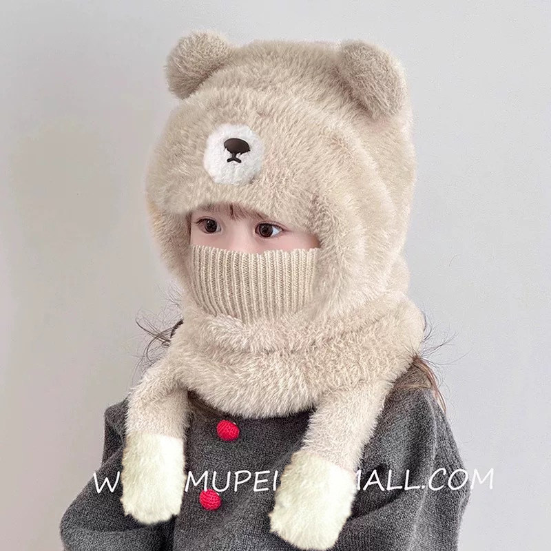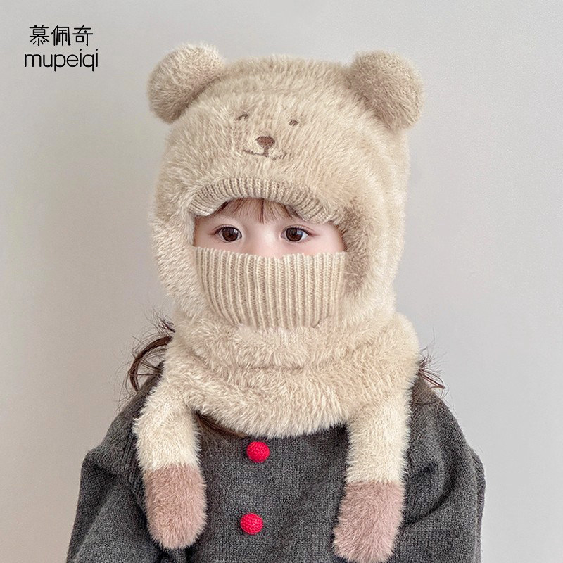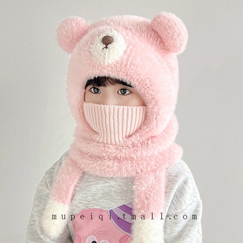尼多熊儿童帽子围巾一体冬季防风帽宝宝毛绒护耳帽女童加厚保暖帽