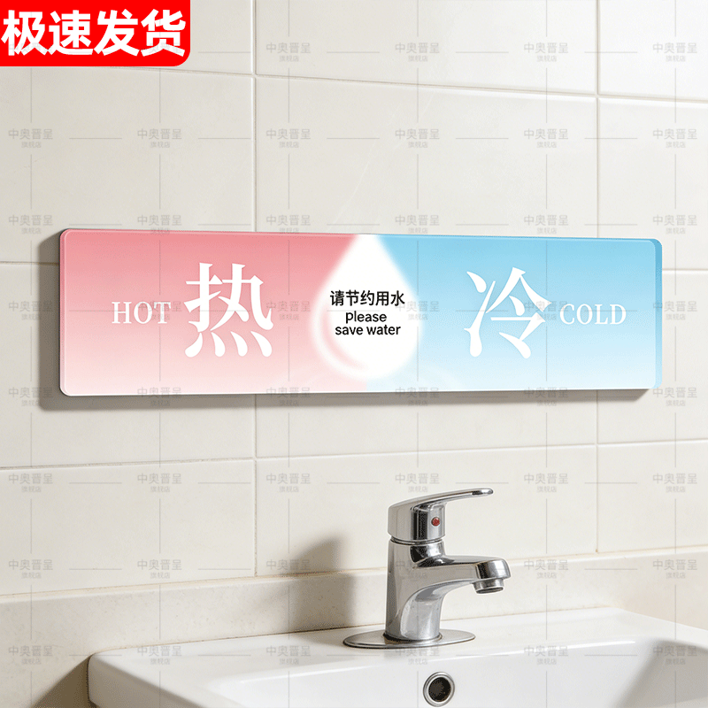 亚克力冷热水标识贴家用卫生间浴室淋浴房水龙头冷水热水切换开关小心烫伤温馨提示墙贴酒店民宿客房防水贴纸