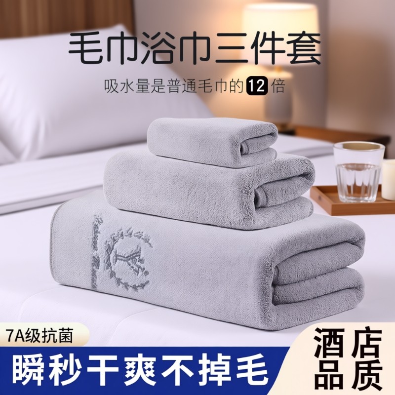 三利浴巾女珊瑚绒吸水非全棉纯棉裹巾大人毛巾三件套情侣2025新款