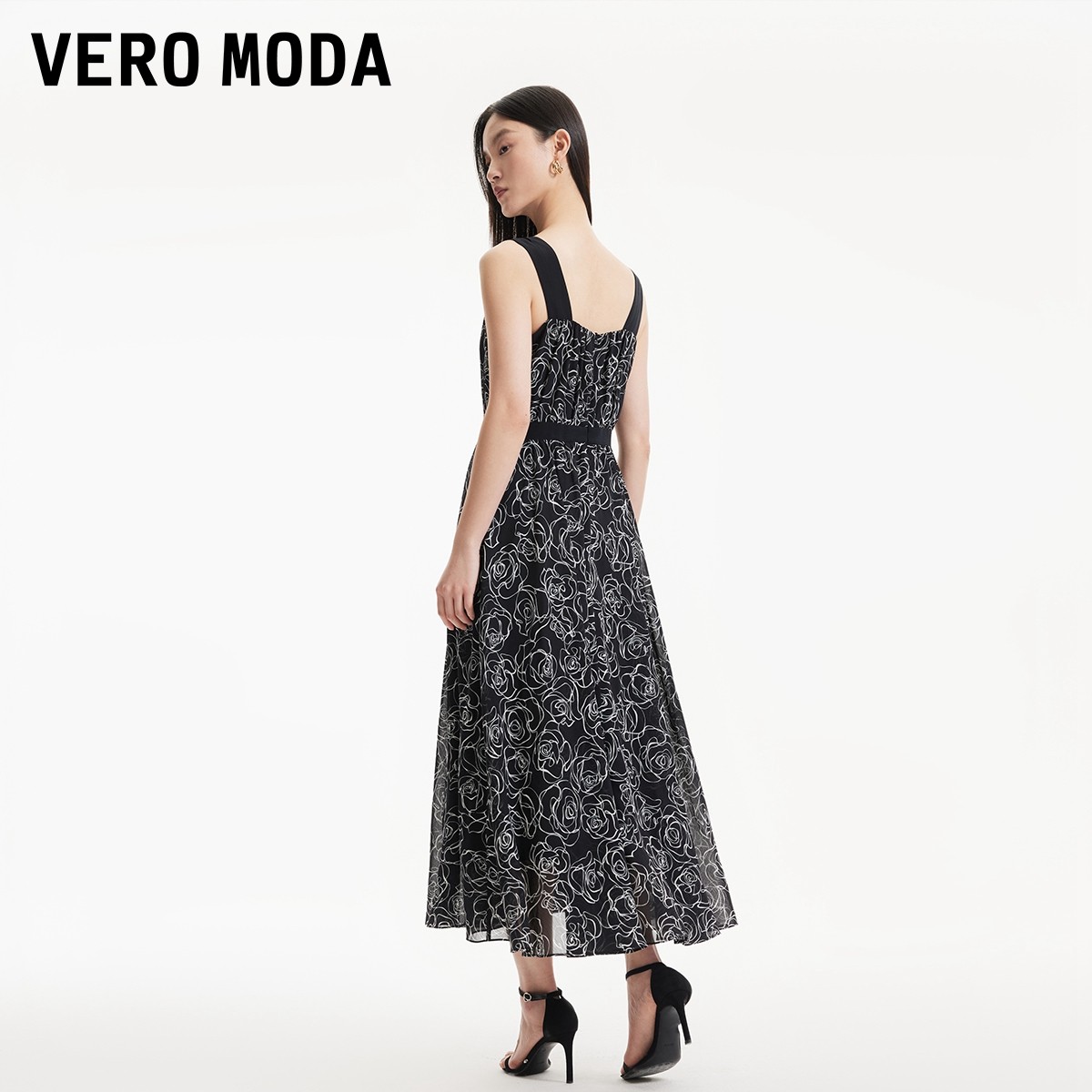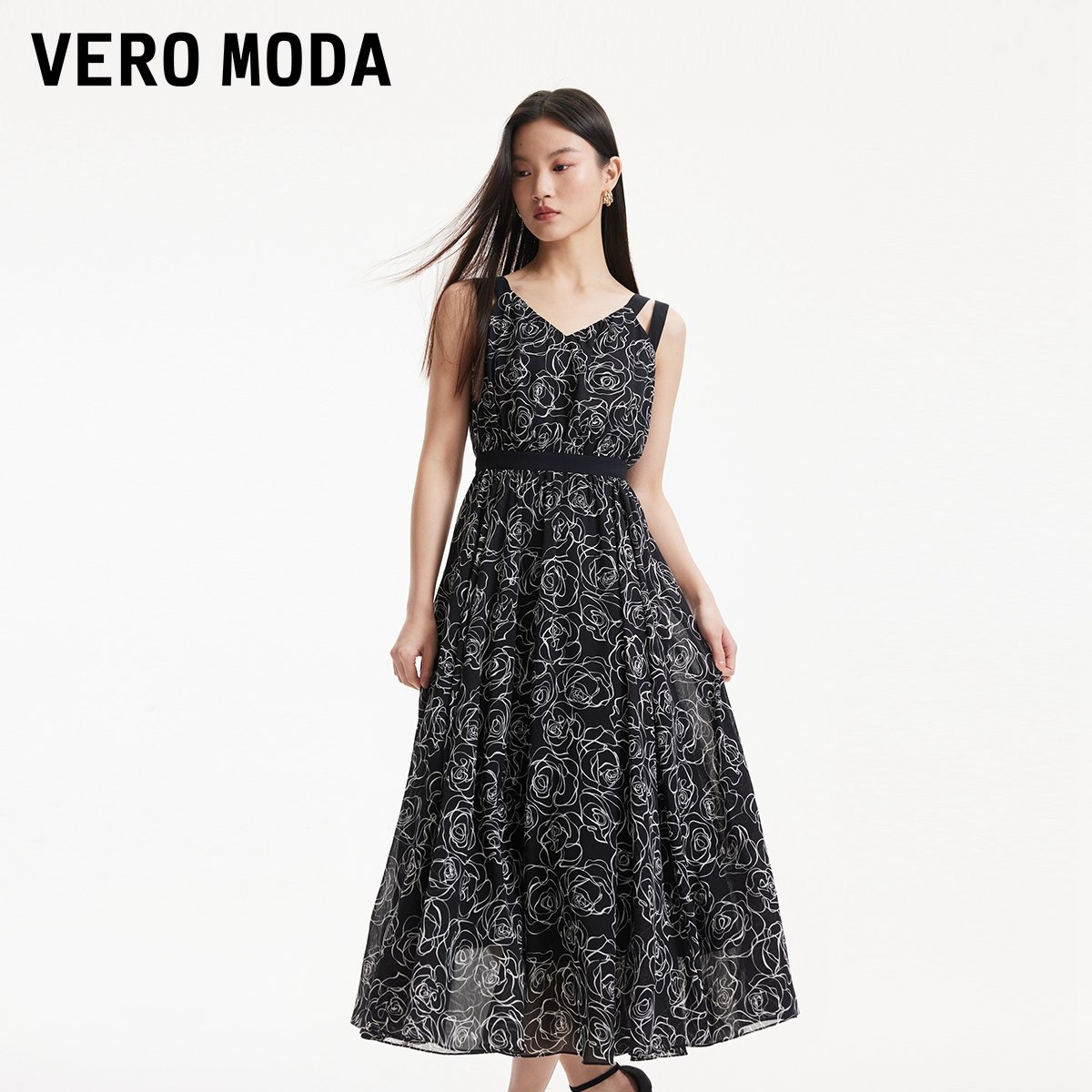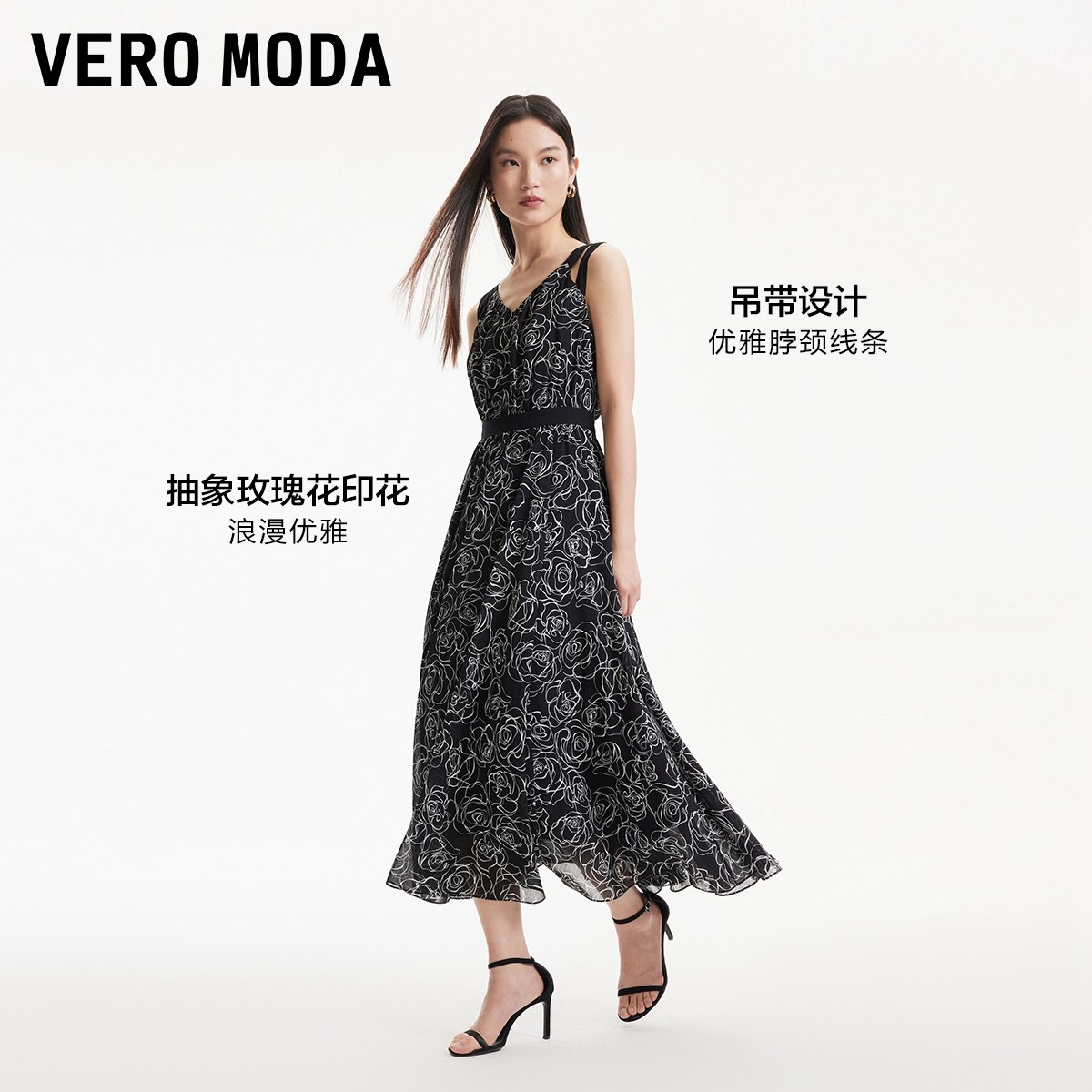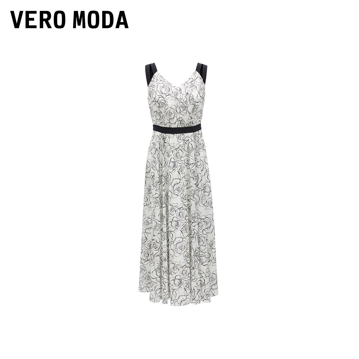 Vero Moda奥莱连衣裙夏季新款吊带玫瑰花撞色优雅通勤收腰裙子