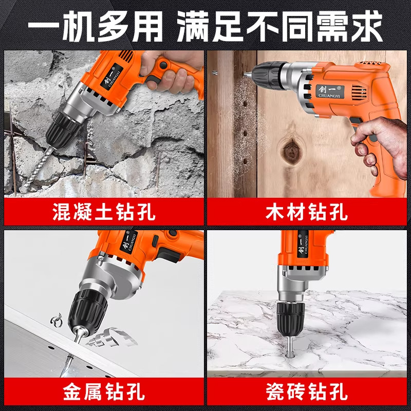 创一电钻大功率手电钻冲击钻家用多功能手枪钻电转电动螺丝刀插电