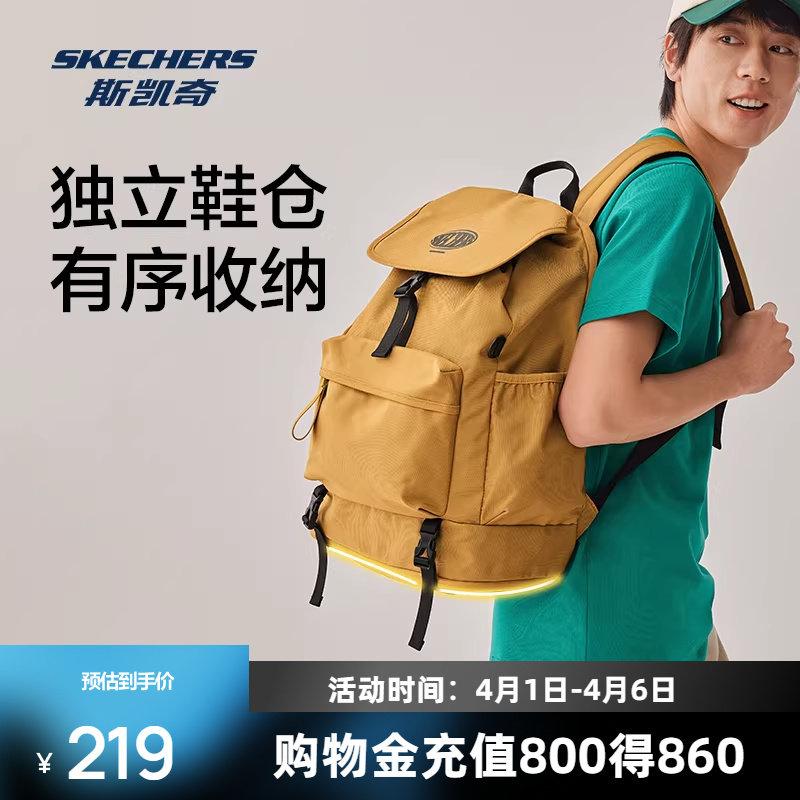 斯凯奇双肩包大容量简约旅行背包开学季百搭大学生运动休闲书包