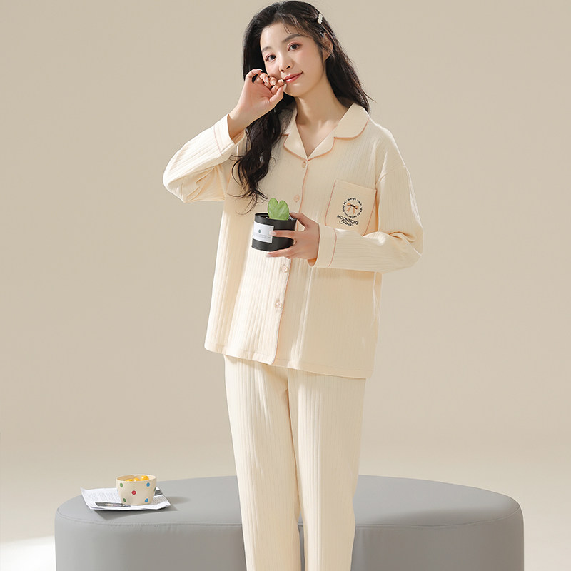 古今睡衣女春秋季2025年新款日系简约风长袖纯色女士可外穿家居服