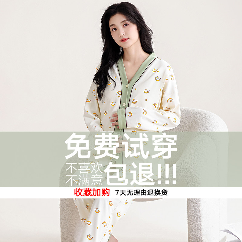 浪莎睡衣女春秋款纯棉长袖2025年新款秋冬大码薄款宽松开衫家居服