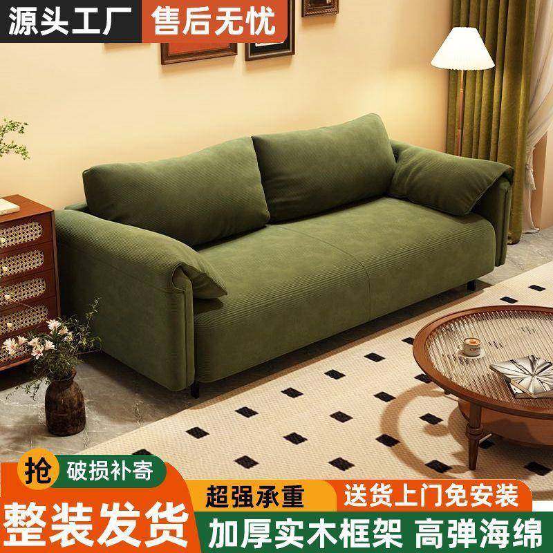 实木布艺沙发家用客厅直排沙发小户型出租屋极简家具公寓懒人沙发