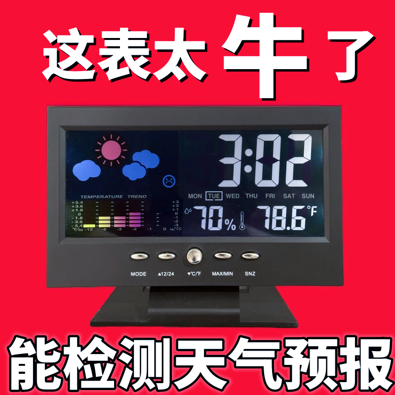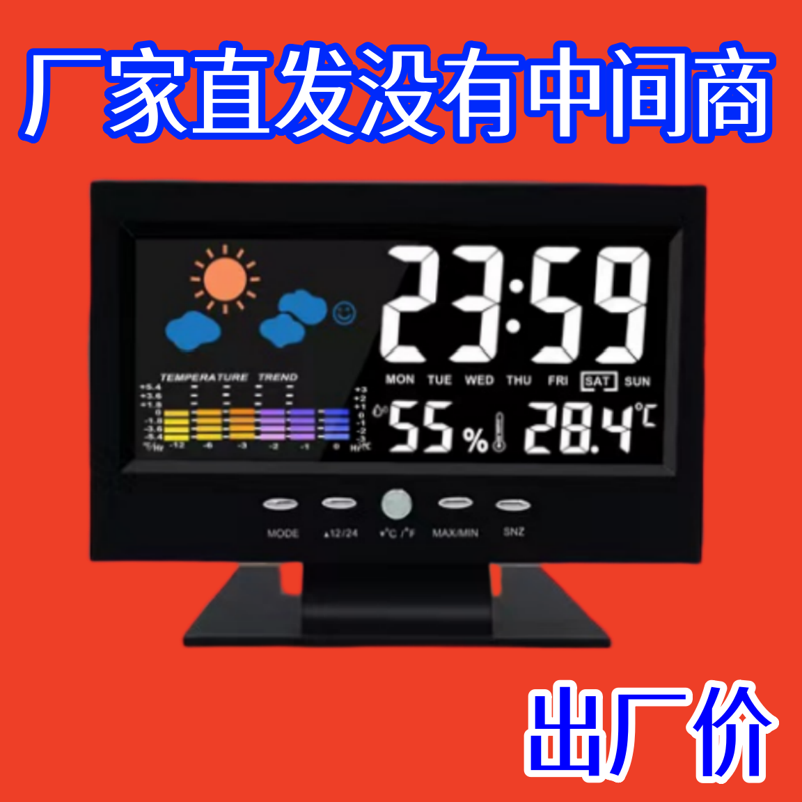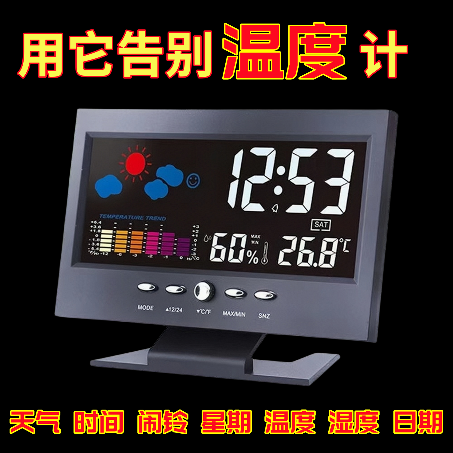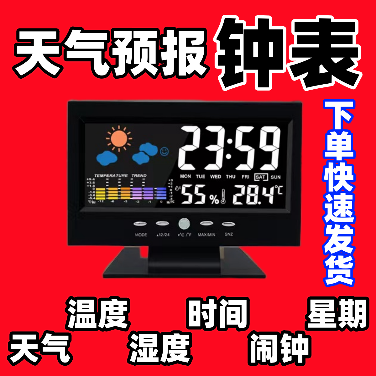 智能多功能夜光闹钟气象彩屏家用电子时钟带万年历台钟天气预报钟