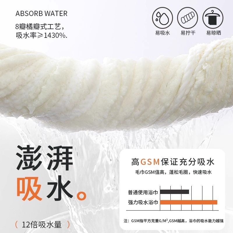 亚朵星球100%纯棉浴巾速吸水干爽亲肤浴室洗澡毛巾加长加厚男女款