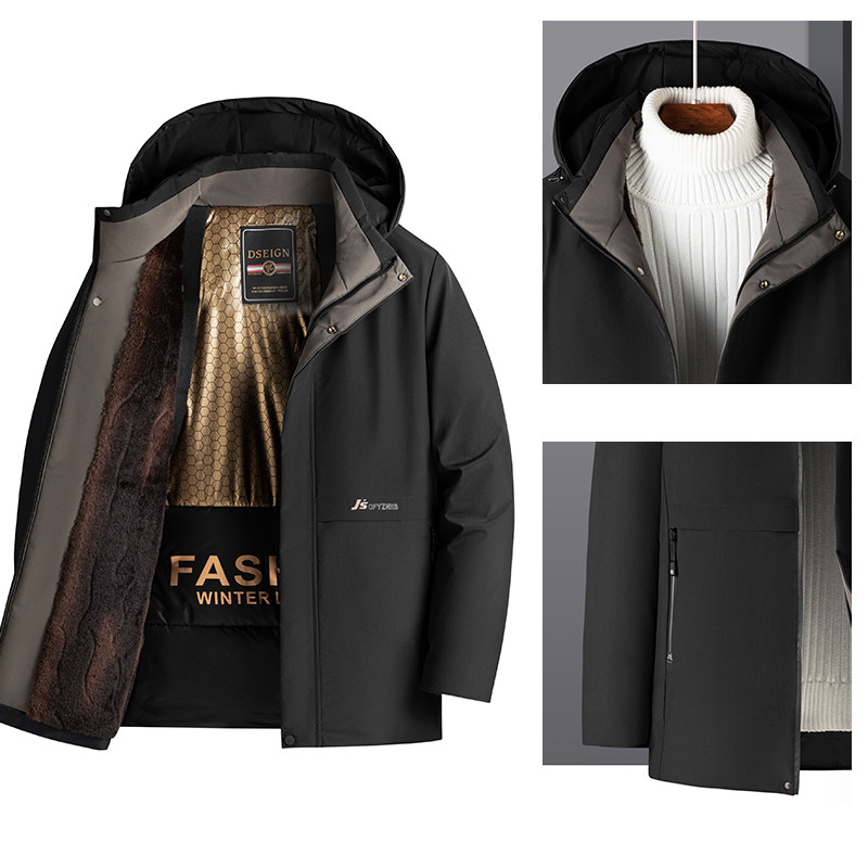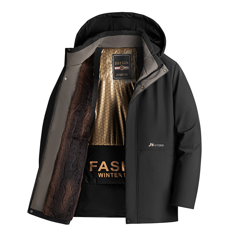 一线撤柜撤标黑金加绒棉衣新款时尚商务印花可拆卸连帽派克棉服男