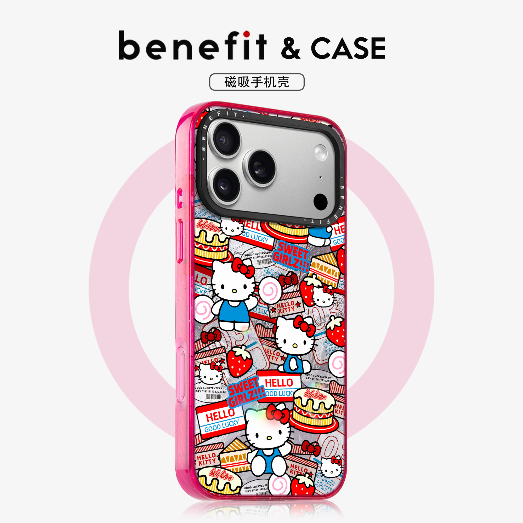 benefit日韩少女心kt猫蛋糕17适用于iphone16promax苹果15PRO晶盾磁吸手机壳13新款14套12冰川纹防摔彩色边框