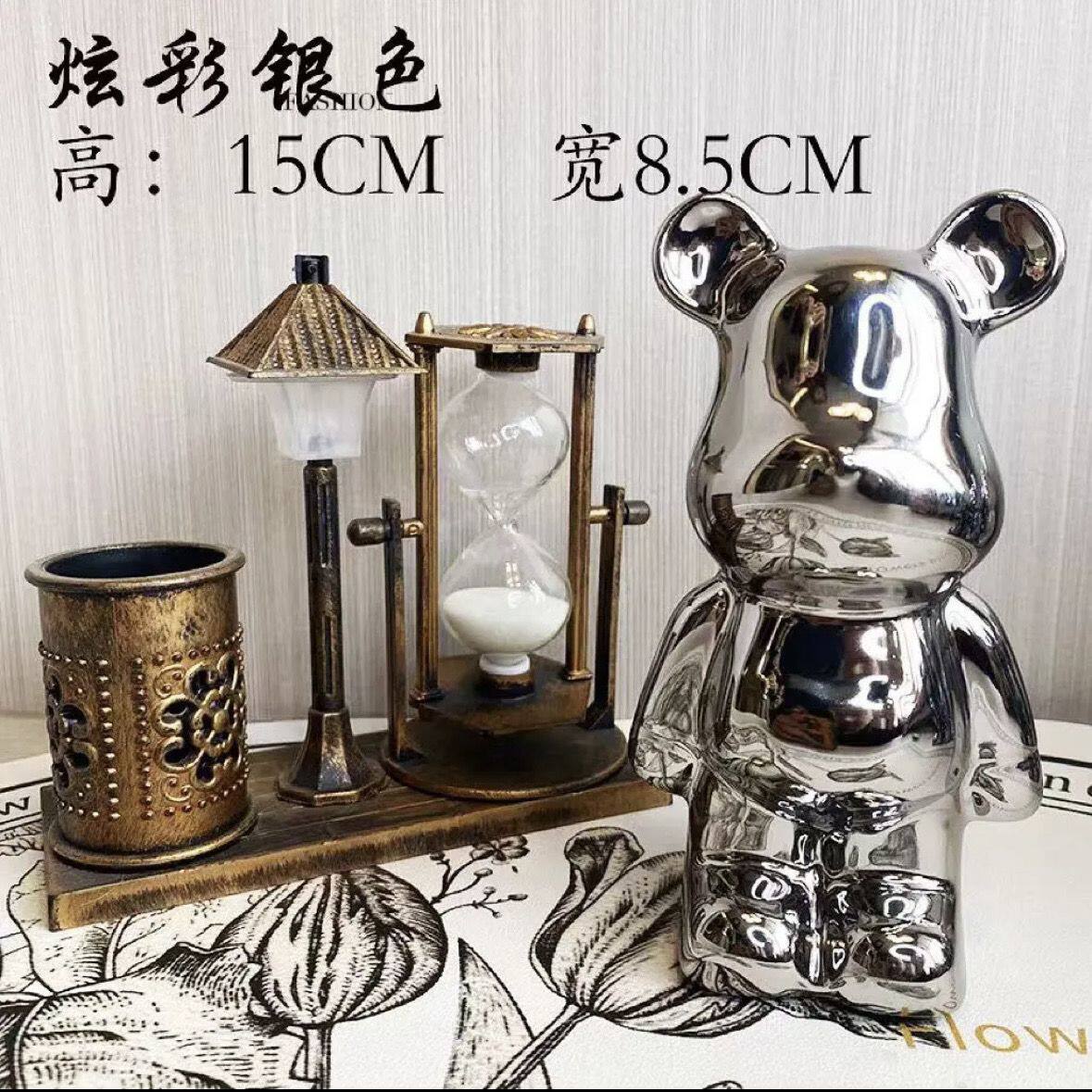 潮玩陶瓷摆件暴力熊办公室爱心电镀暴力熊生日礼物家居饰品纪念