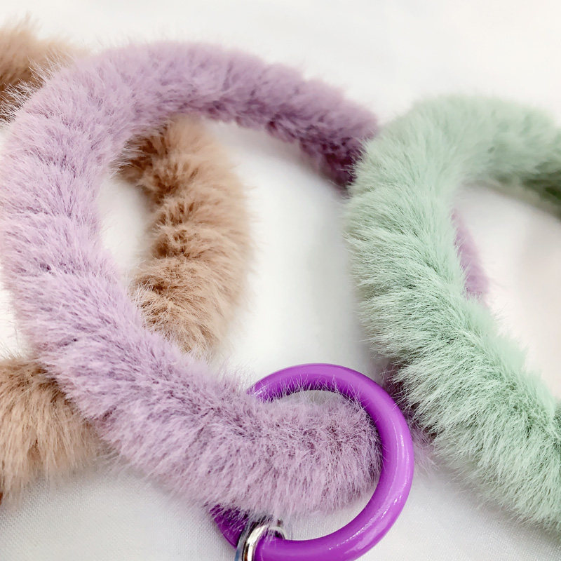 简约纯色秋冬款毛绒防摔圈圈手环腕带通用配件适用苹果华为小米