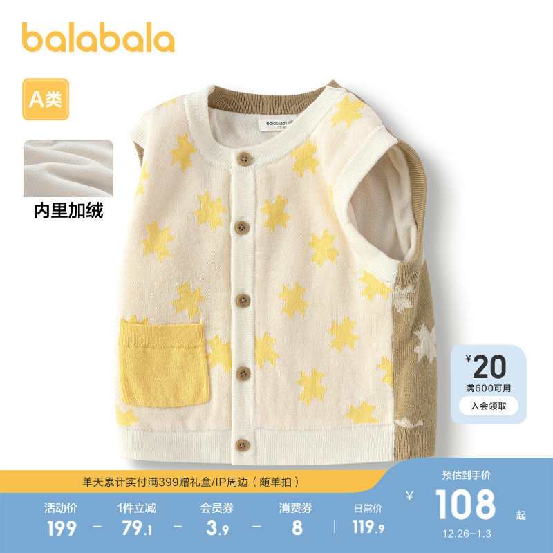 巴拉巴拉童装宝宝马甲儿童冬装2025男童针织背心加绒时髦洋气百搭