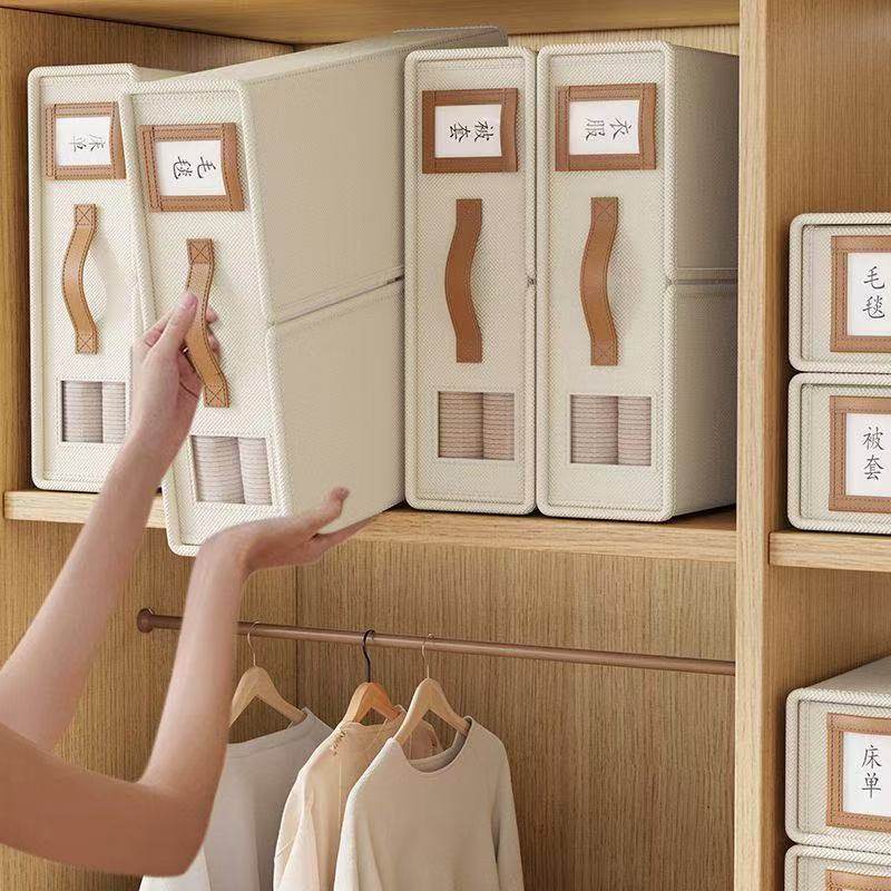 天山棉麻收纳筐衣柜收纳整理分层神器PP板可水洗衣服储物盒收纳箱