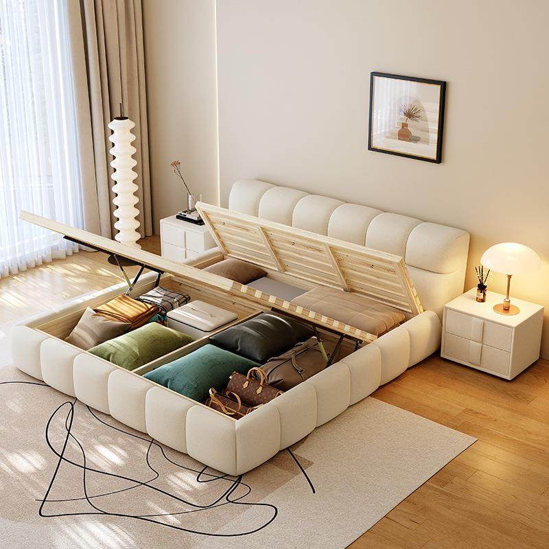 布艺床奶油风泡芙床现代简约科技布床意式主卧软包高箱储物双人床