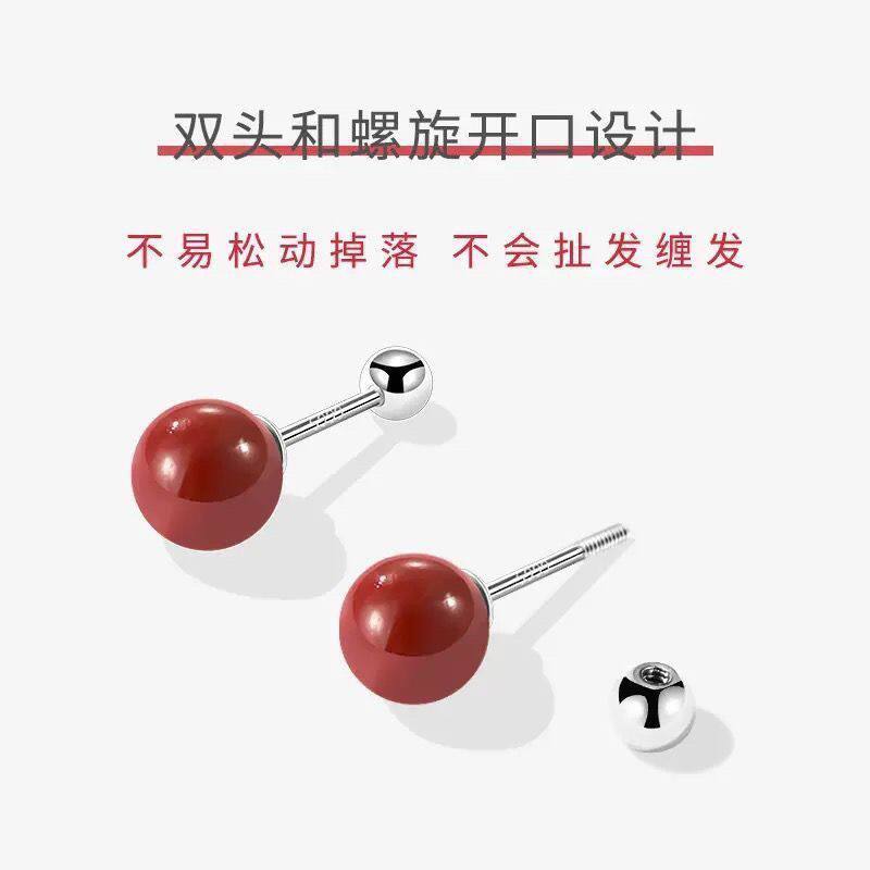 2026新年朱砂耳钉养耳洞女小众螺丝扣耳骨钉高级感红色耳饰螺旋
