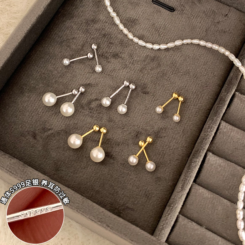 S999纯银迷你珍珠耳钉螺丝拧扣2025新款爆款睡觉免摘养耳洞耳环
