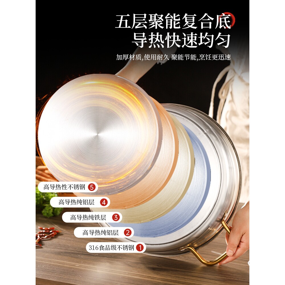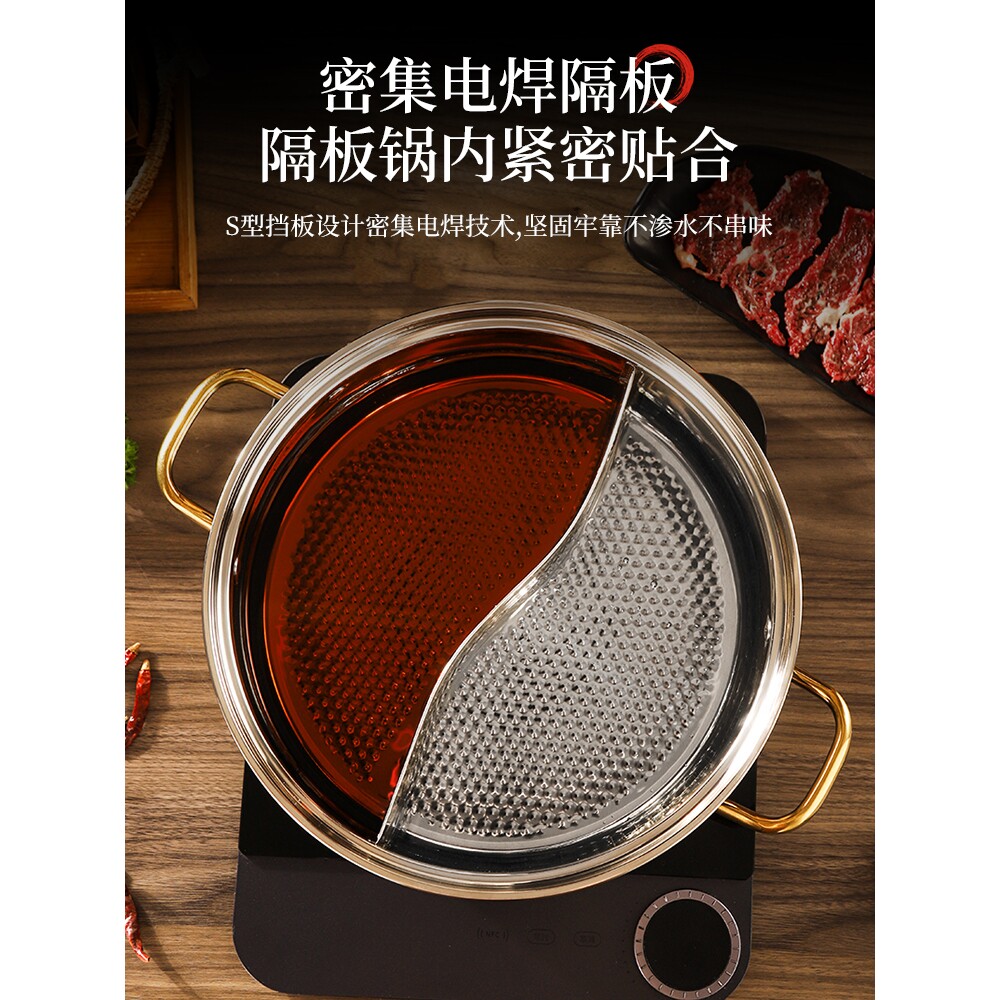 德国新款鸳鸯锅火锅锅家用电磁炉专用涮锅大容量不锈钢火锅盆汤锅