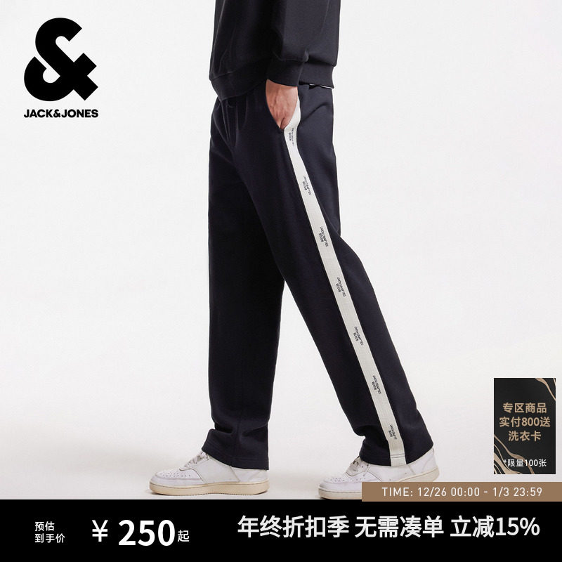 杰克琼斯男装士卫裤秋季新款织带黑色宽松直筒休闲长裤子美式情侣