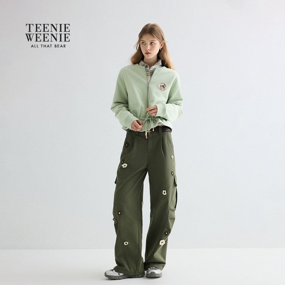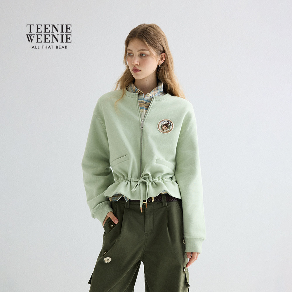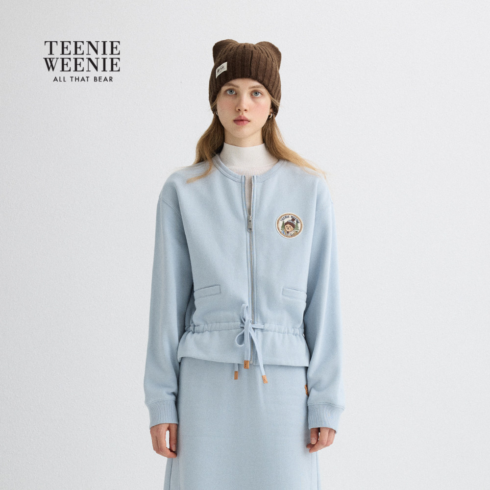 TeenieWeenie小熊女装卫衣冬季加绒圆领收腰开衫外套荷叶边上衣