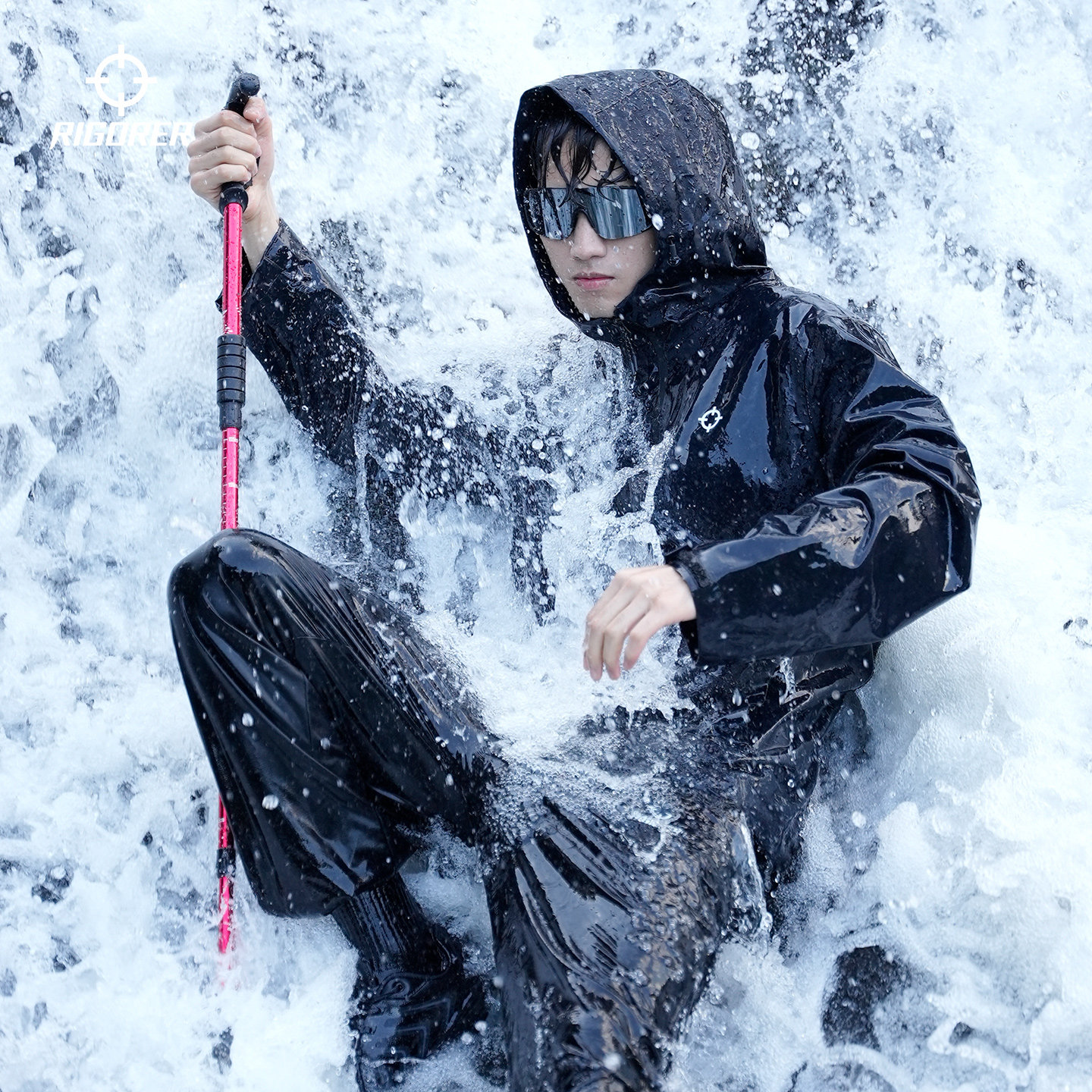 准者单壳冲锋衣运动外套男士春秋新款户外徒步防泼水夹克连帽上衣