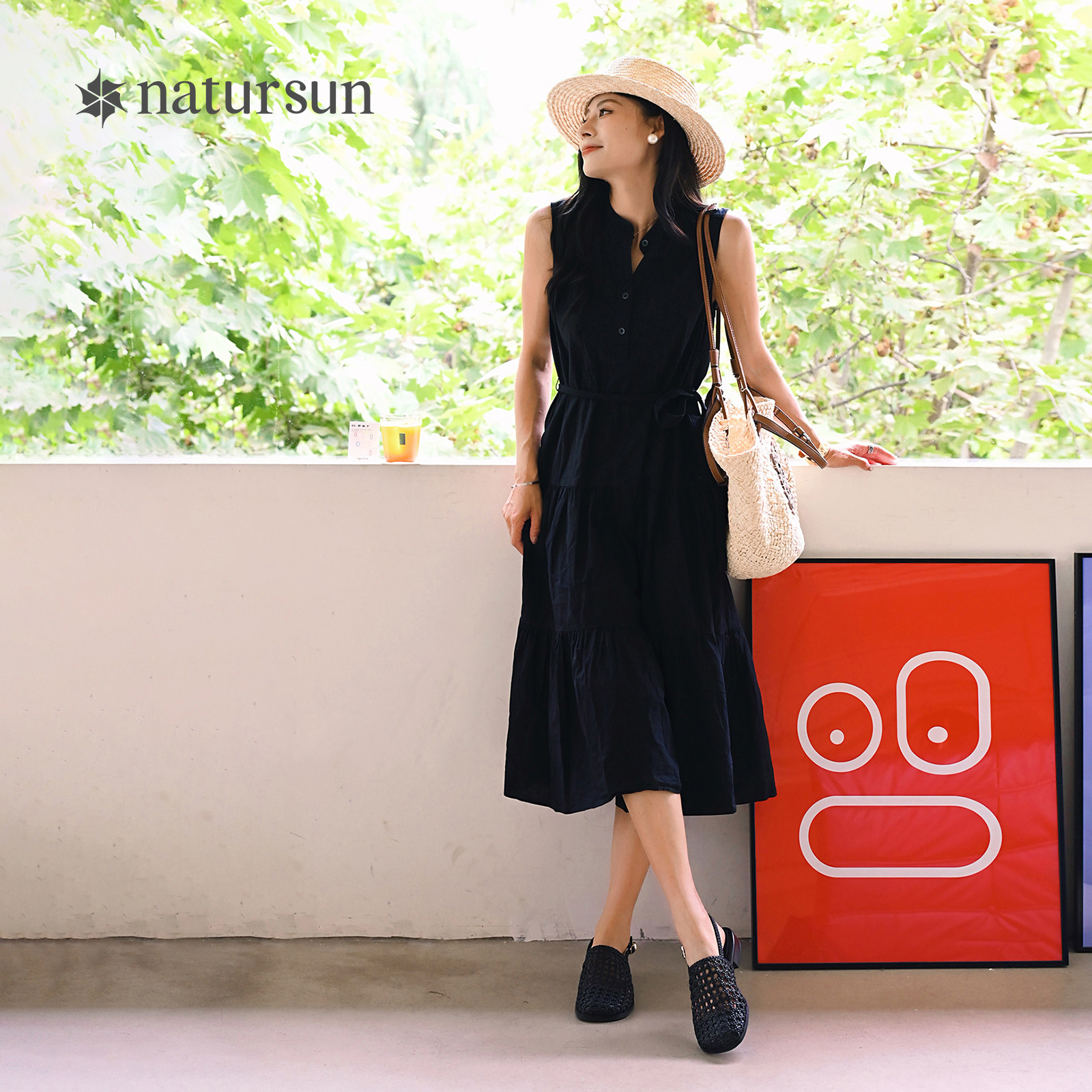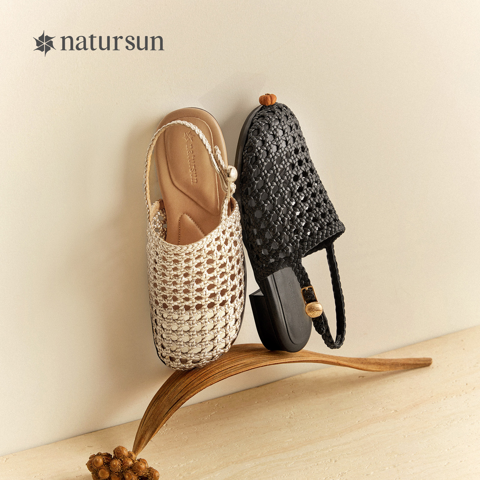 natursun包头凉鞋2025夏季新款复古编织网面镂空平底拖鞋女夏外穿