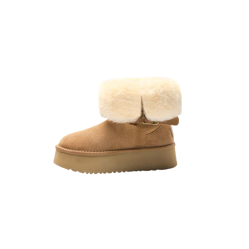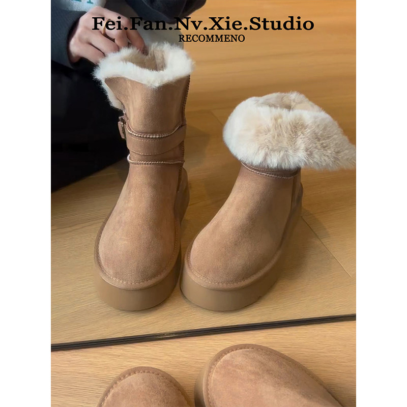 复古厚底雪地靴棉鞋女2025冬季新款两穿毛毛短靴加绒加厚东北保暖