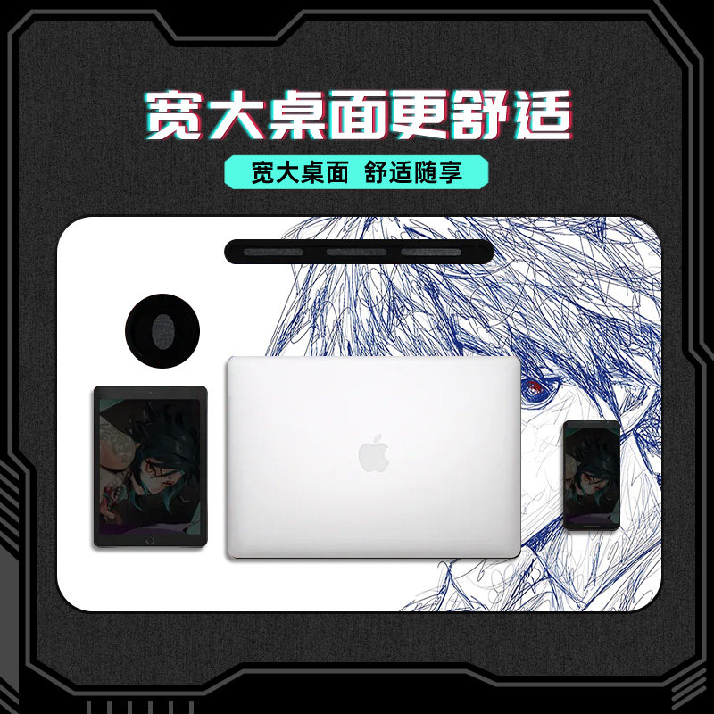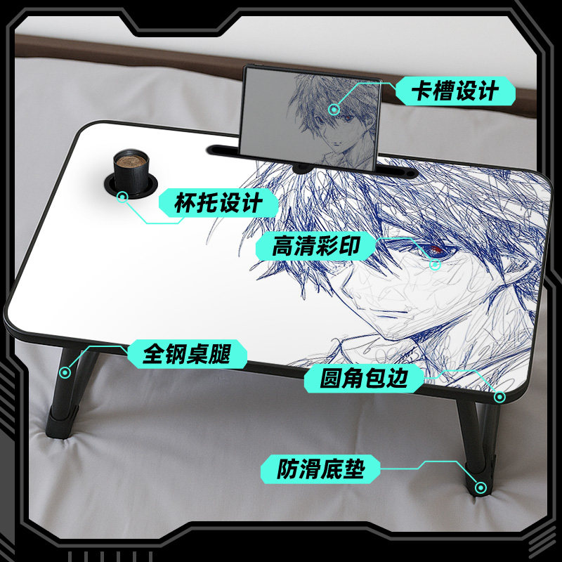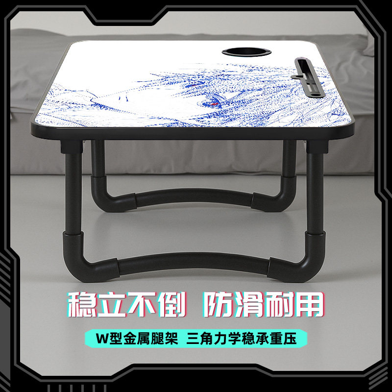 床上小桌子可折叠线稿风二次元笔记本电脑桌小学生学习桌学生宿舍上铺懒人神器卧室坐地小桌板电脑台便携式