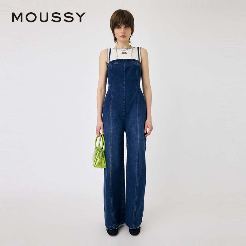 moussy 夏季简约经典复古风吊带连体牛仔裤010HSS11-0230
