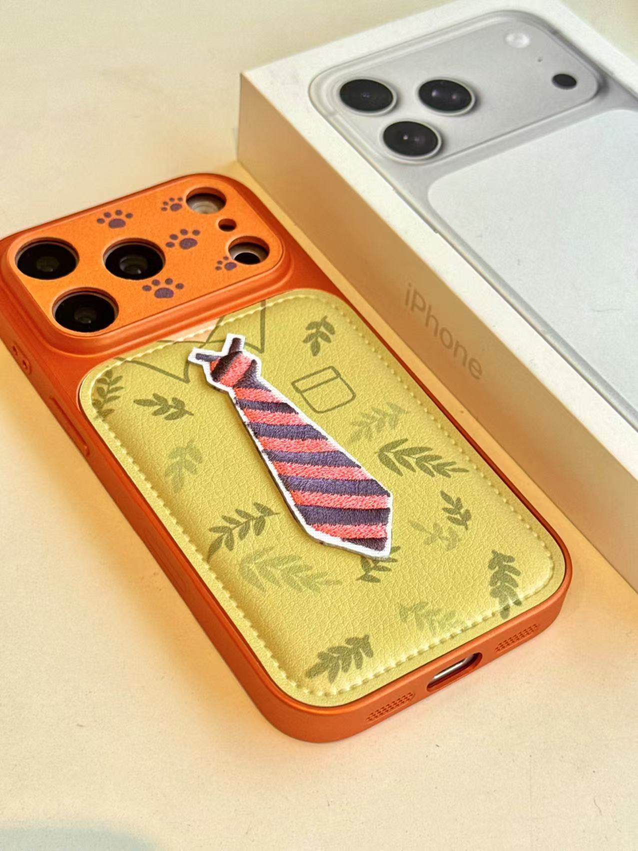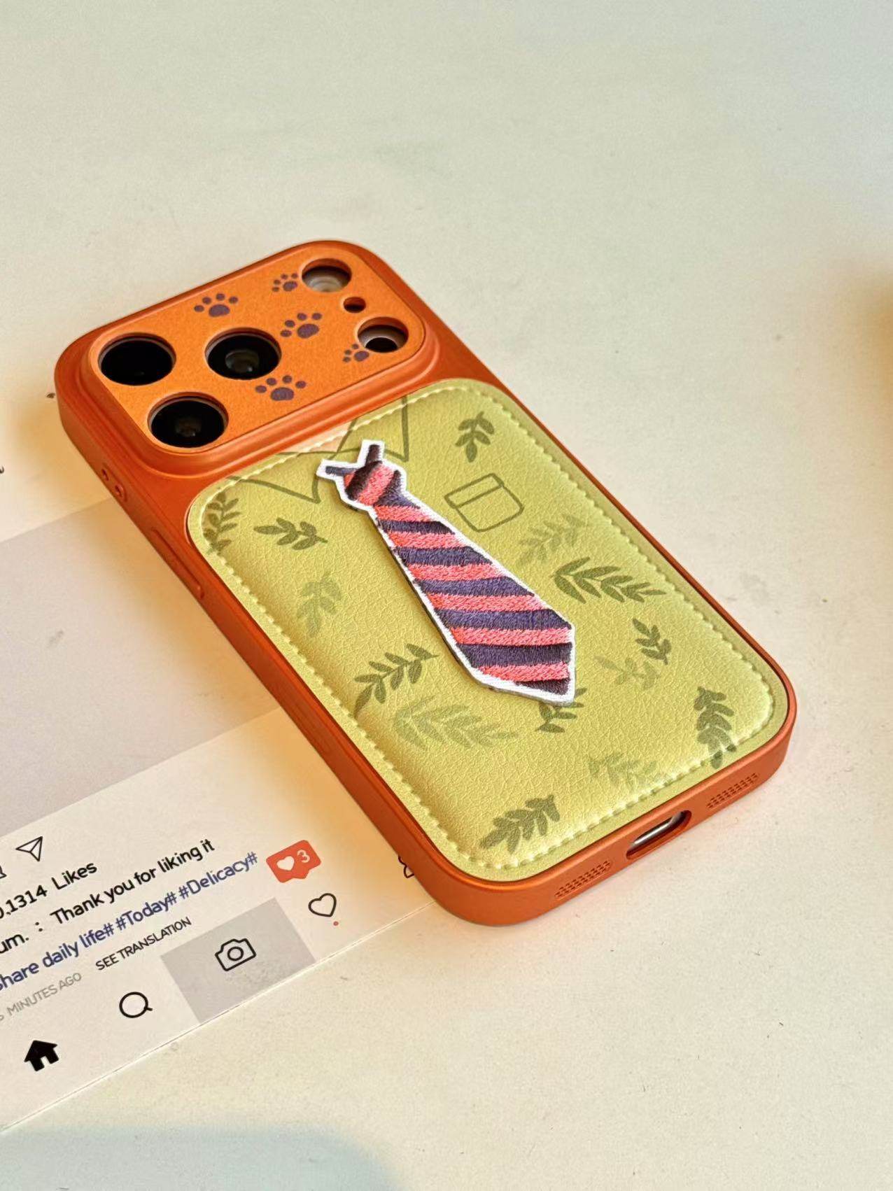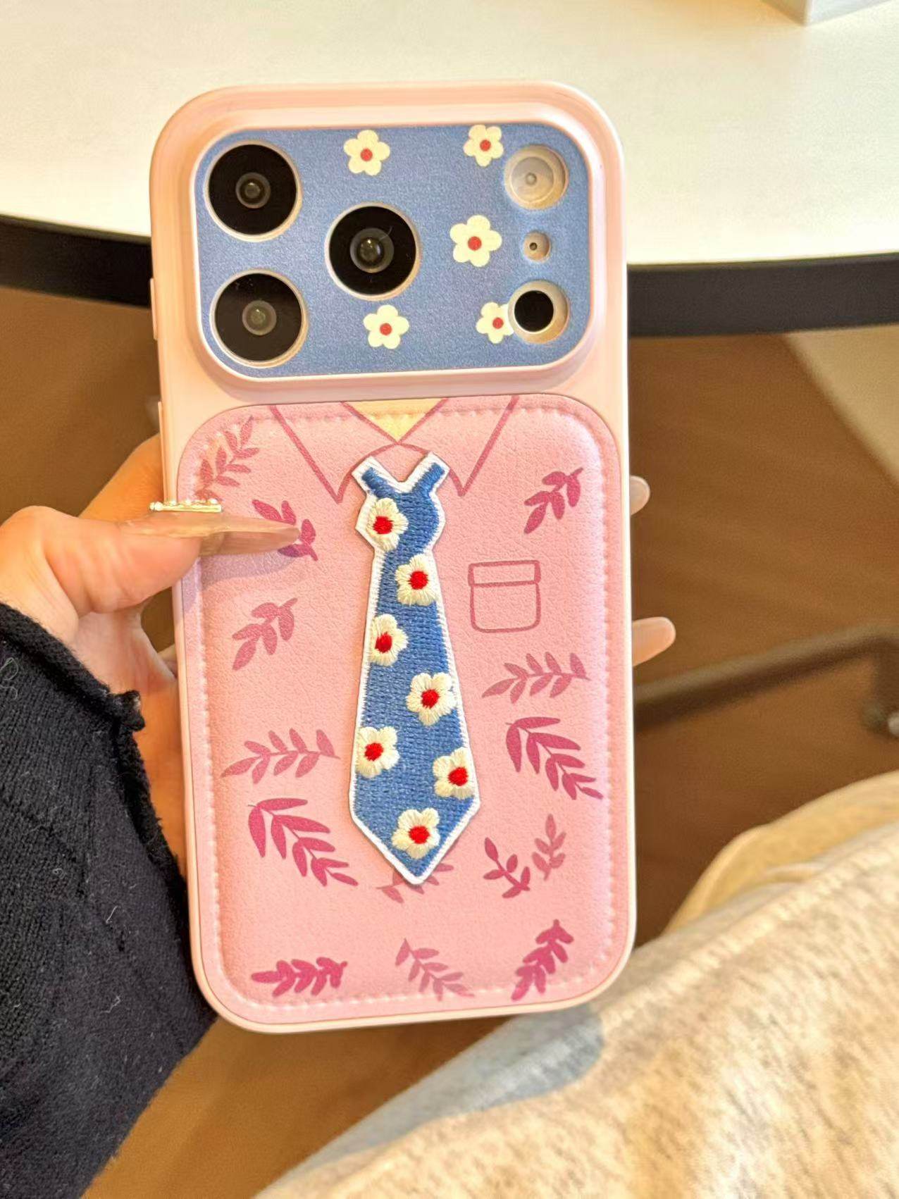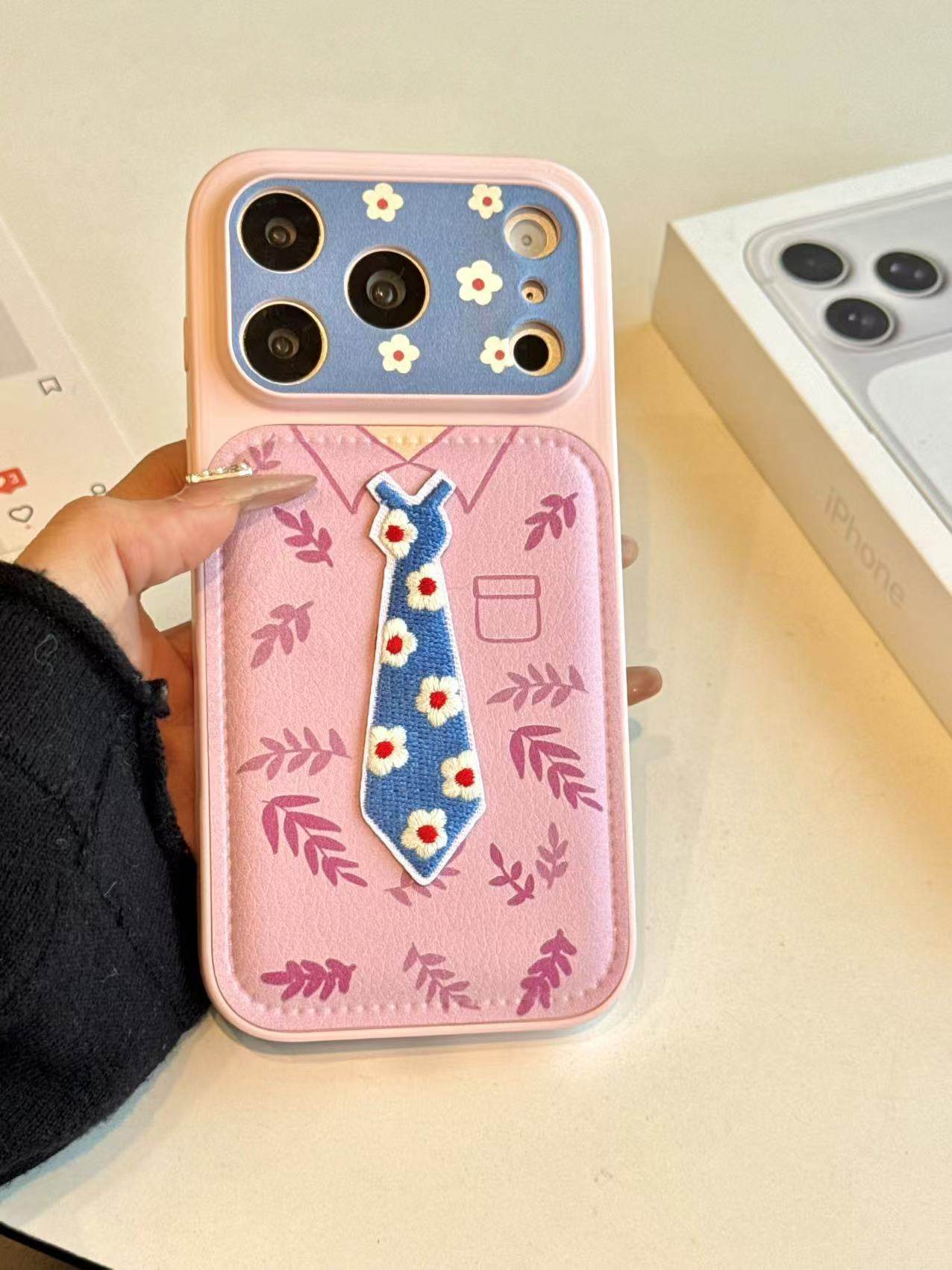 萌系创意尼克衣服刺绣领带适用于iphone17promax苹果16pro机壳15p · 粉底尼克衣服刺绣花朵领带 苹果15