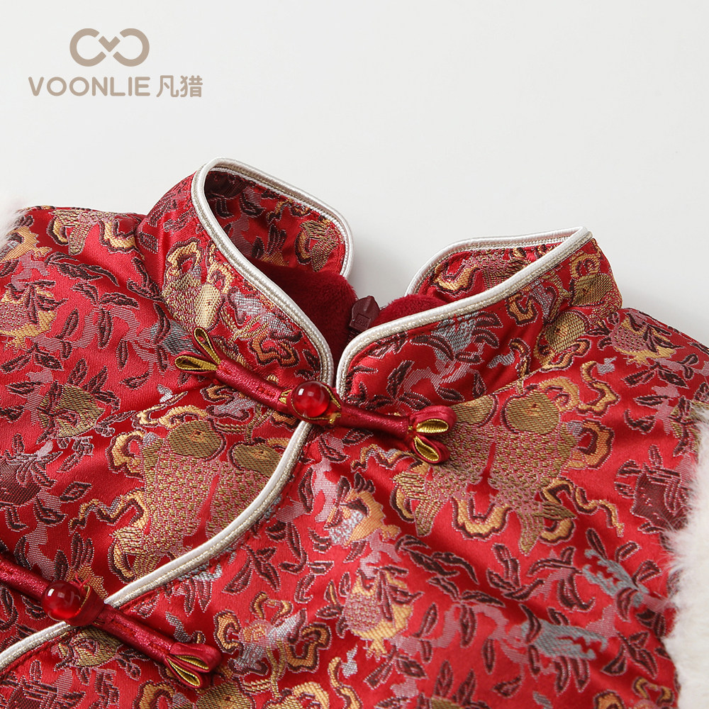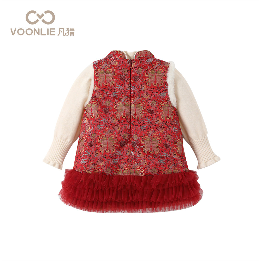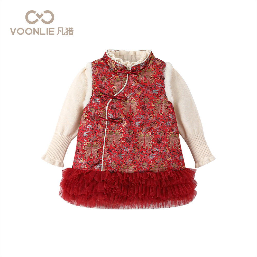 [保暖加厚]女童背心裙中国风裙子宝宝红色连衣裙小儿童冬季拜年服