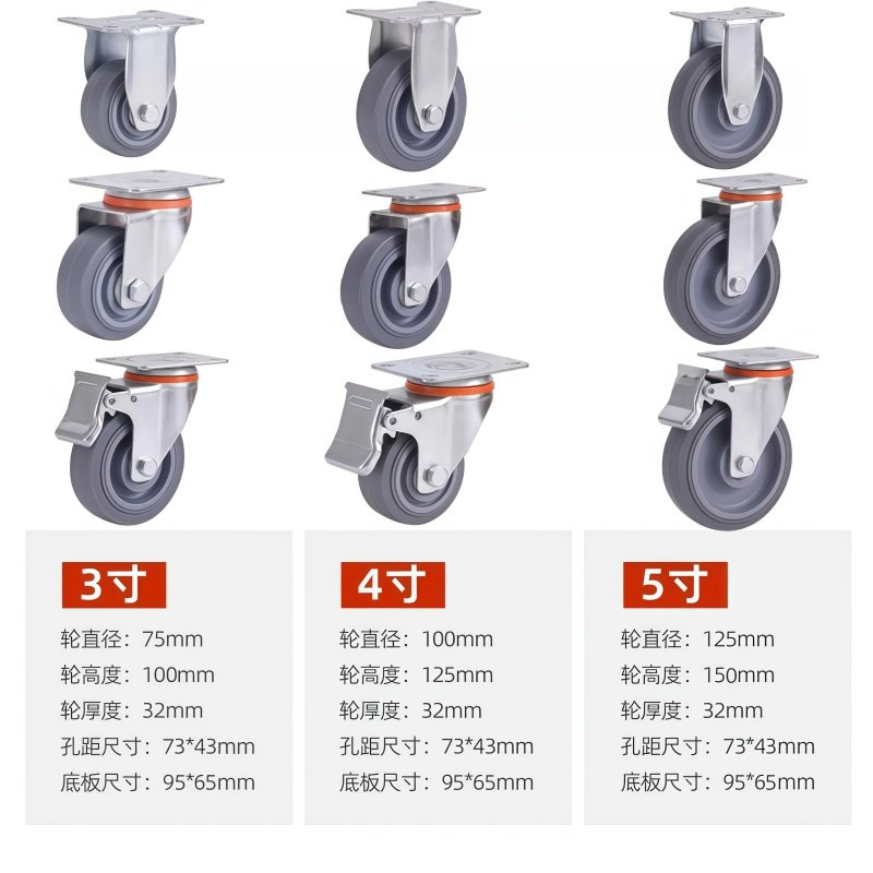 静音橡胶万向轮平板车轮子3寸4寸5寸6寸8寸重型脚轮承重手推车轮