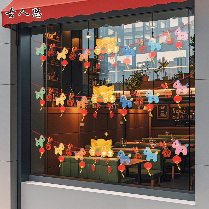 2026新年窗花马年装饰窗户玻璃门贴纸静电橱窗贴春节过年布置贴画