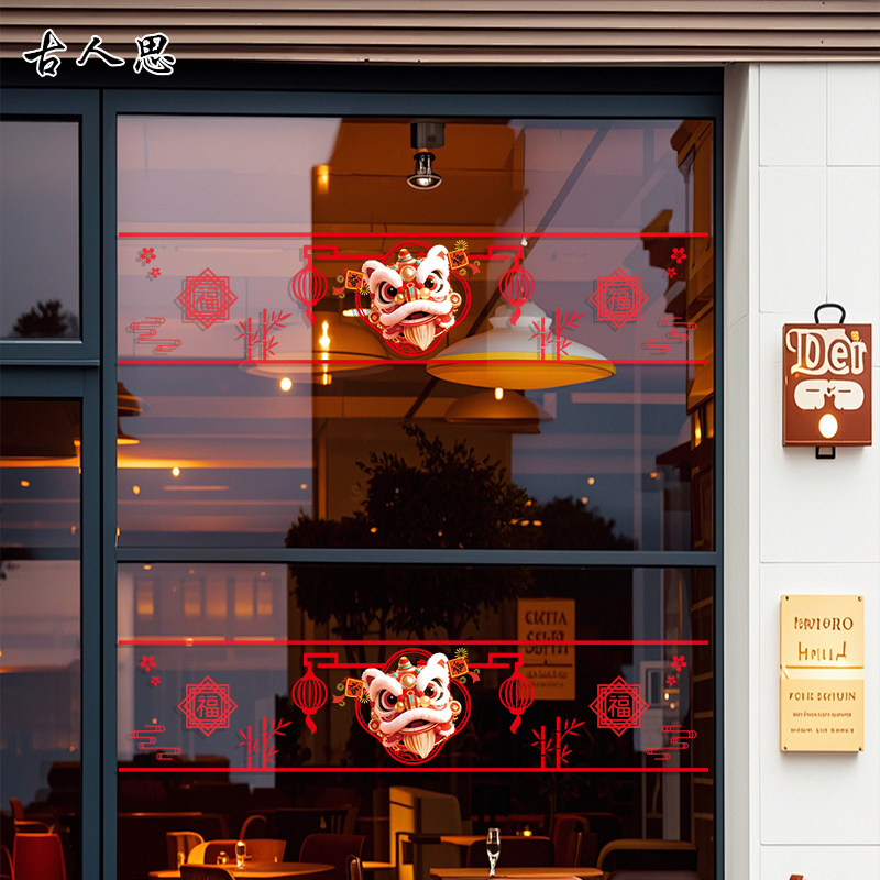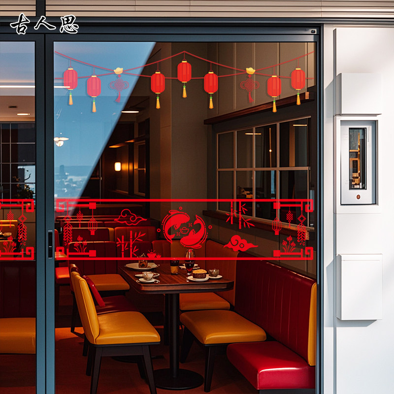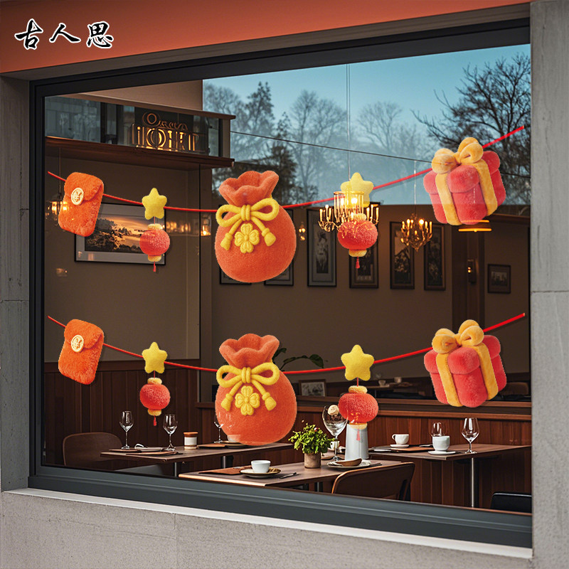 2026年新年剪纸毛绒可爱腰线装饰窗花贴新年装饰红色灯笼节庆窗贴