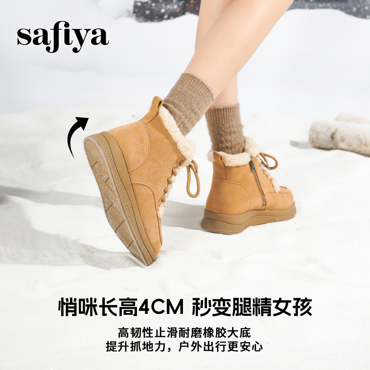 Safiya/索菲娅2025冬季新品加绒系带厚底毛毛马丁短靴雪地靴女