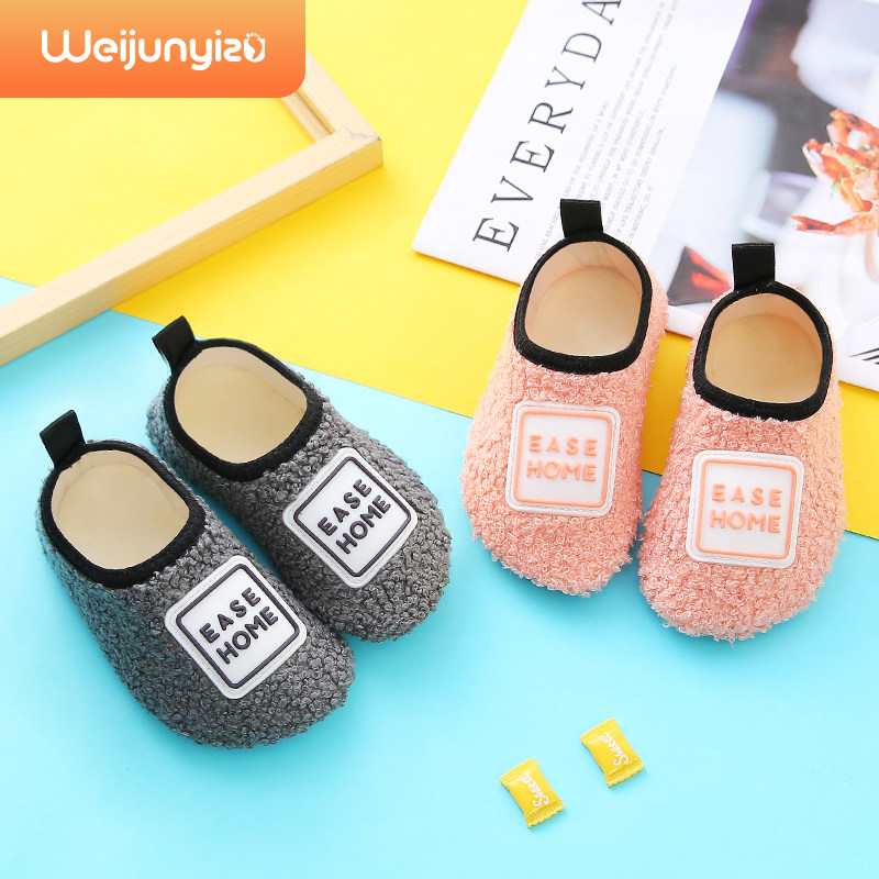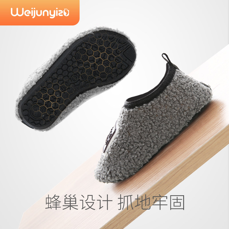 儿童棉拖鞋家居鞋宝宝小孩包跟秋冬季室内防滑毛毛鞋地板鞋男童女