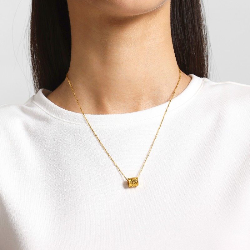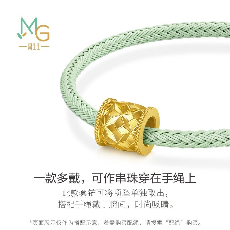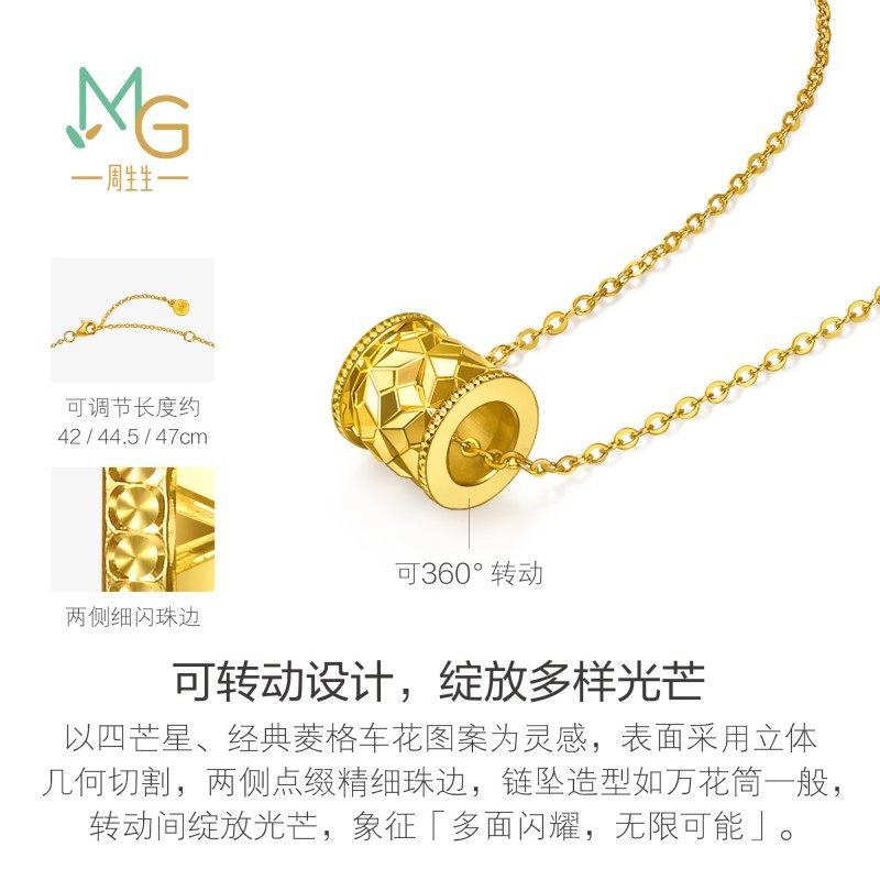 圣诞礼物周生生黄金项链足金流光系列菱格车花转运珠套链95922U